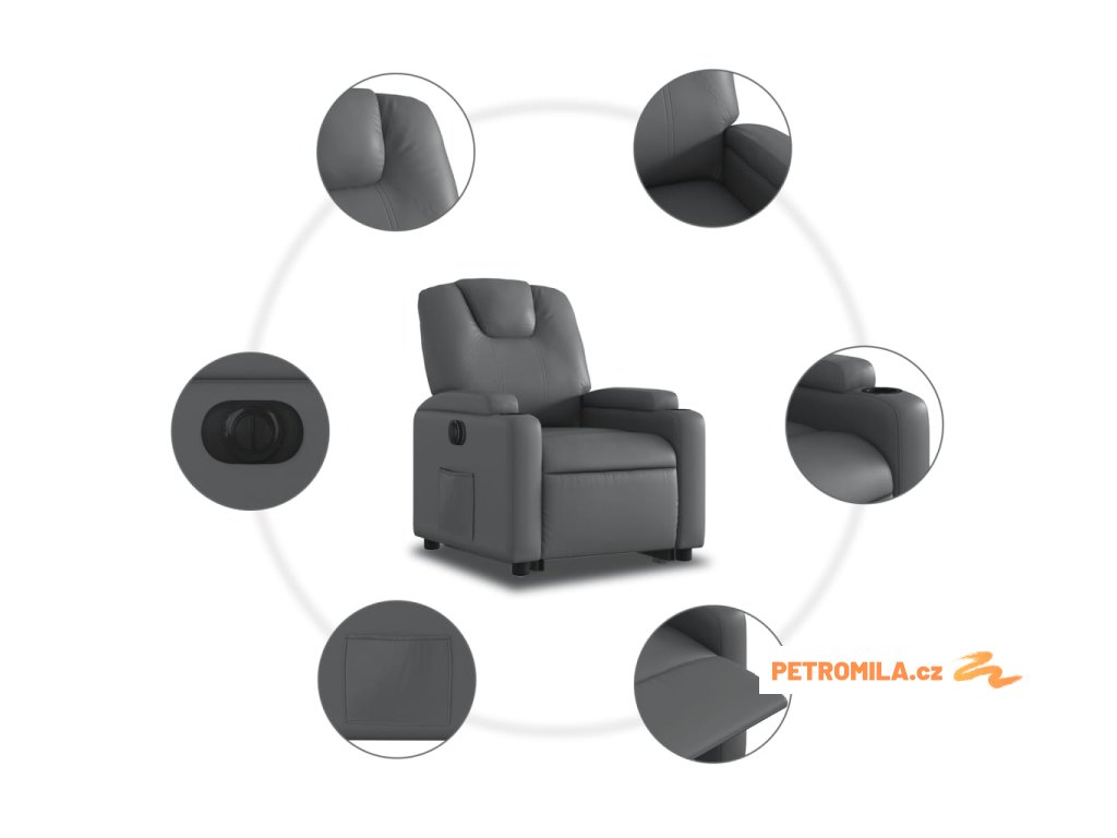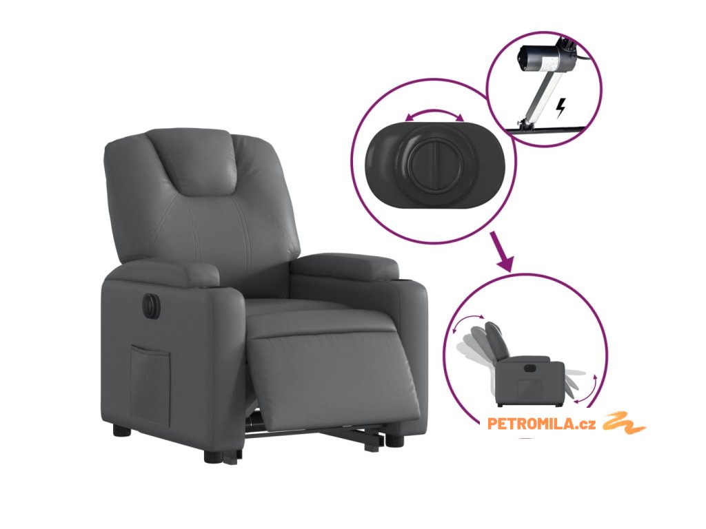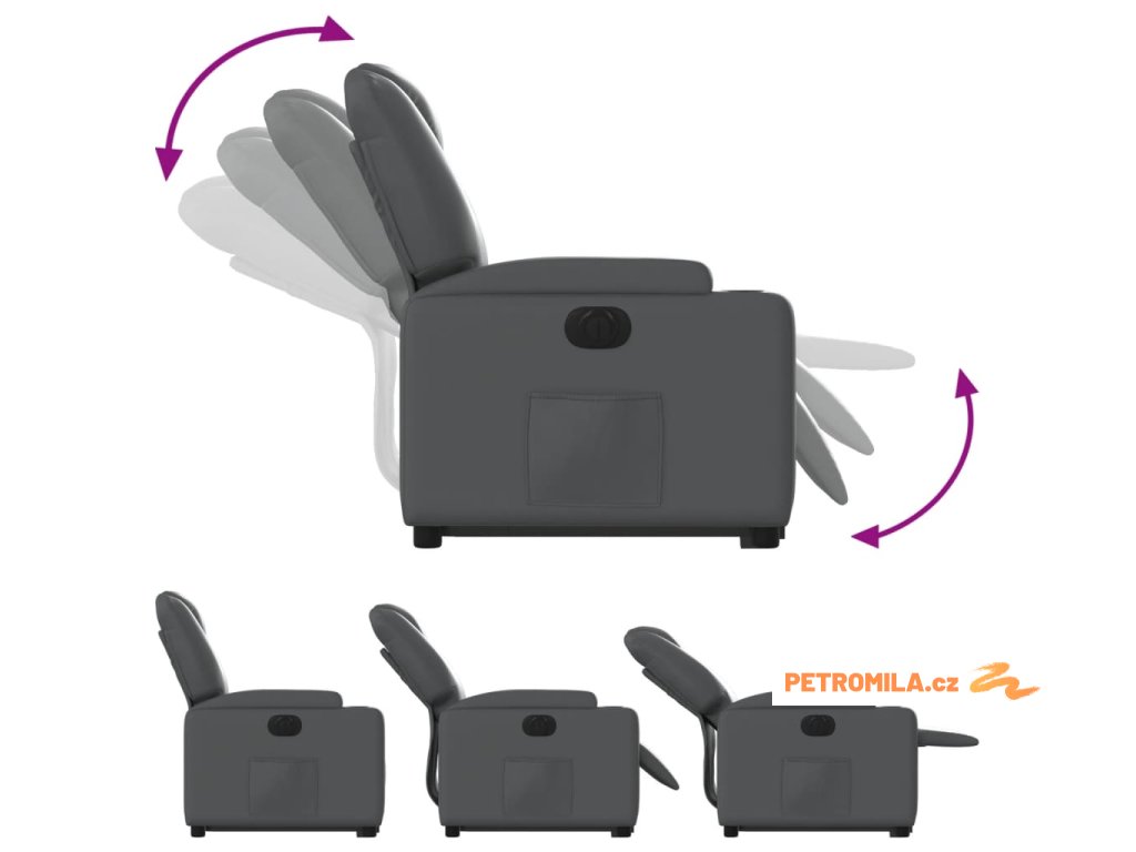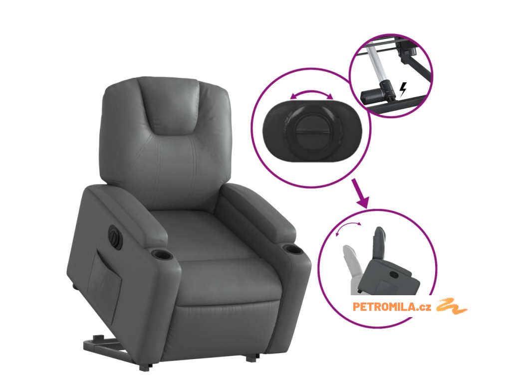 Elektrické zvedací polohovací křeslo šedé umělá kůže