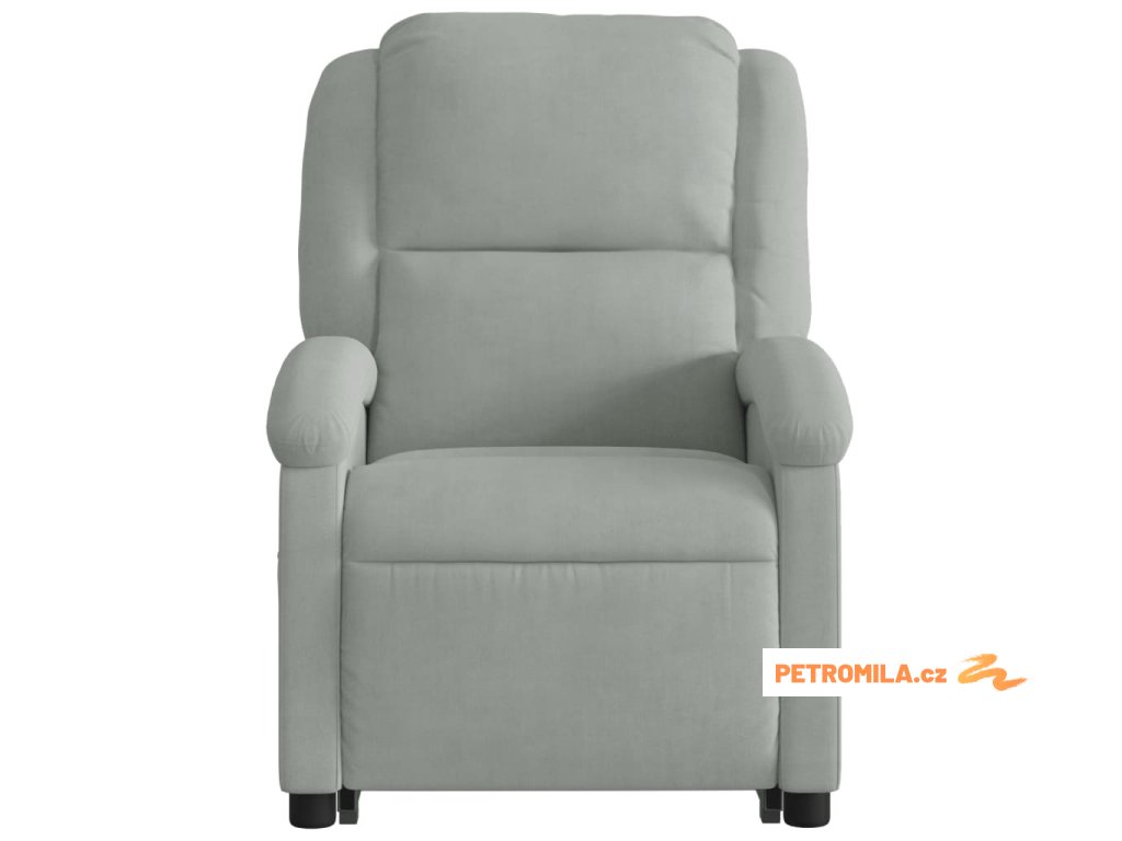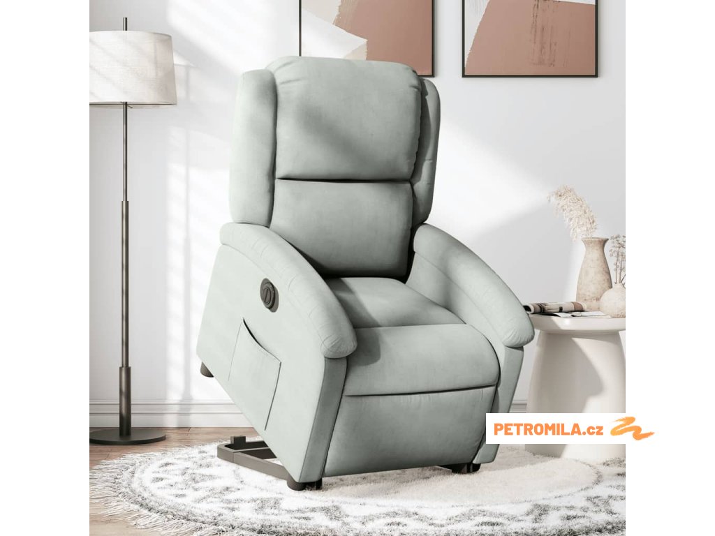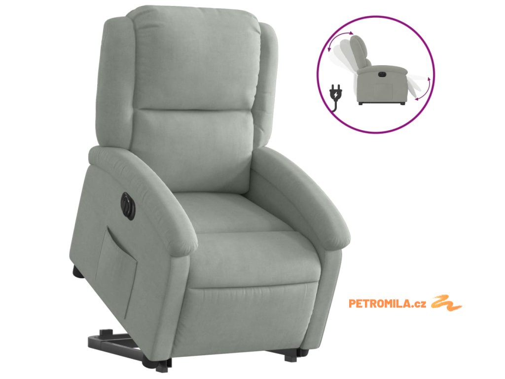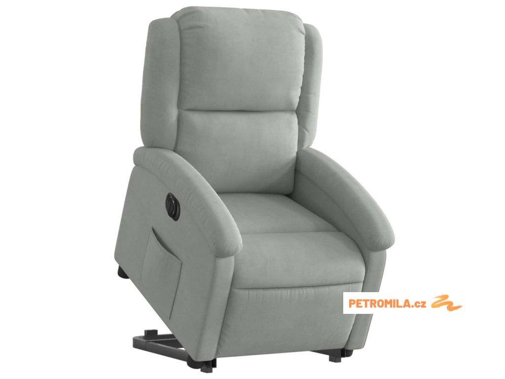Elektrické zvedací polohovací křeslo světle šedé samet