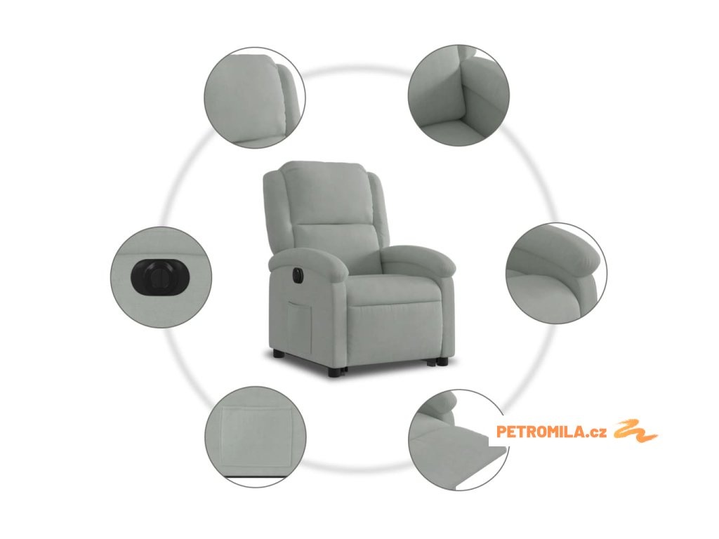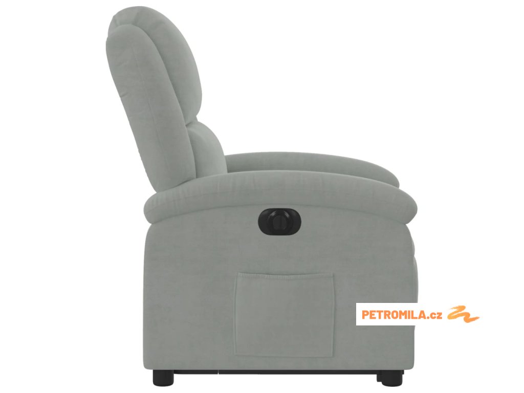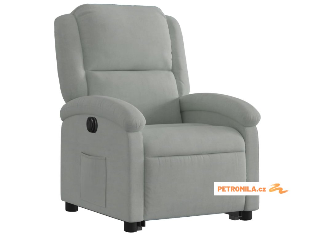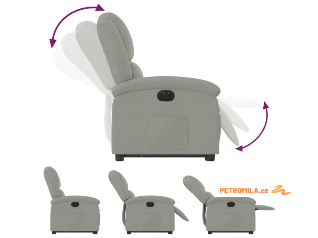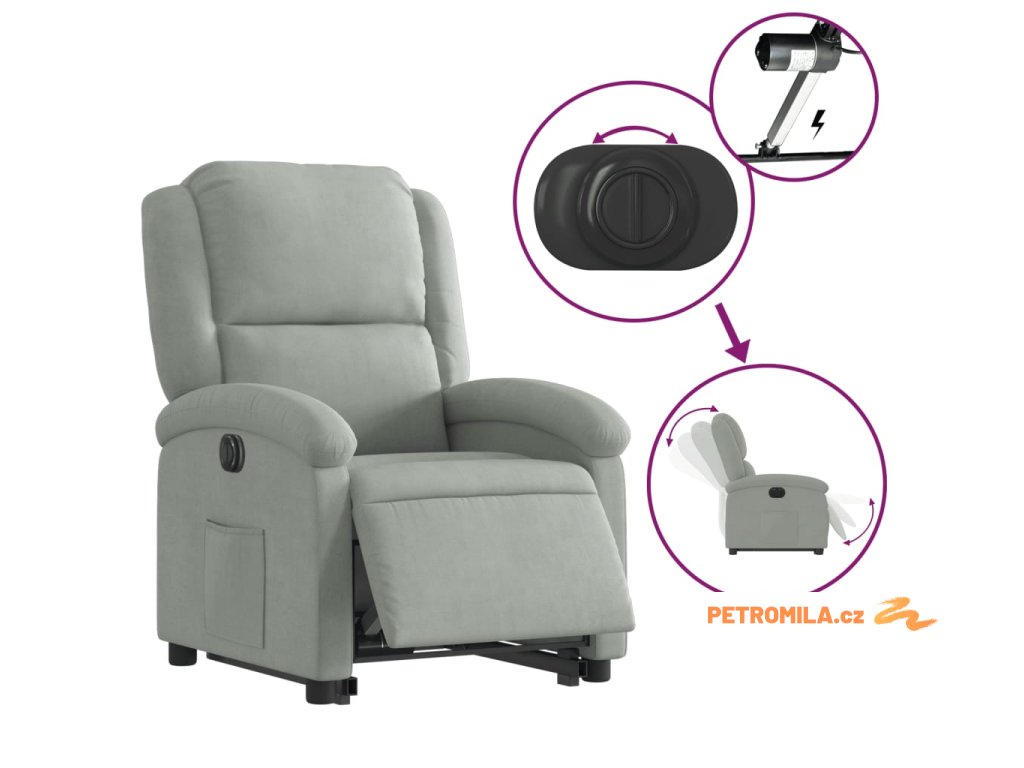 Elektrické zvedací polohovací křeslo světle šedé samet