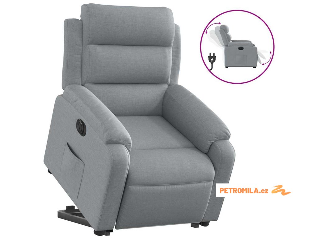 Elektrické zvedací polohovací křeslo světle šedé textil