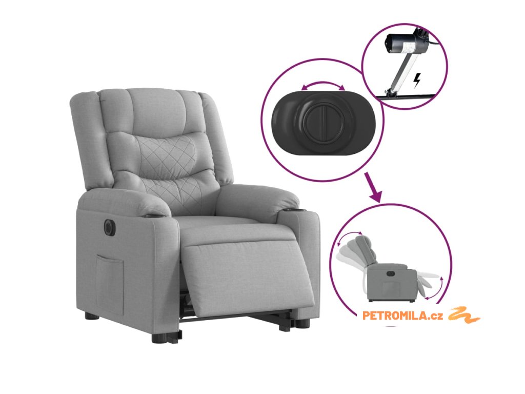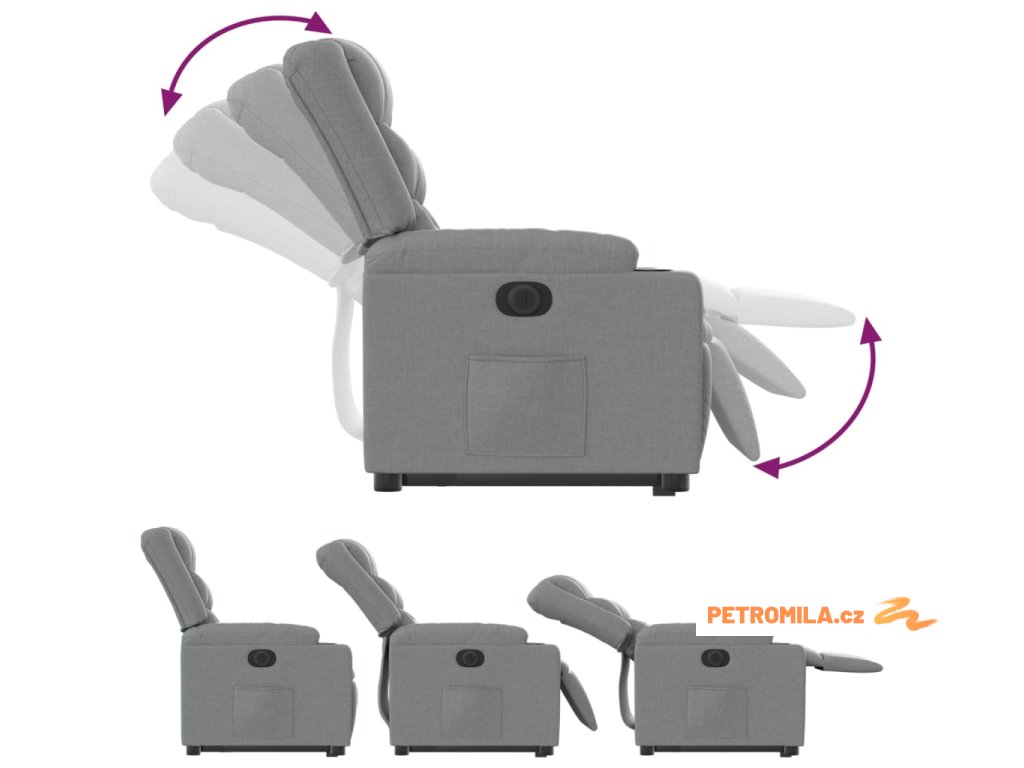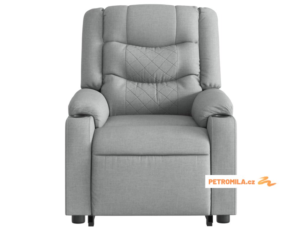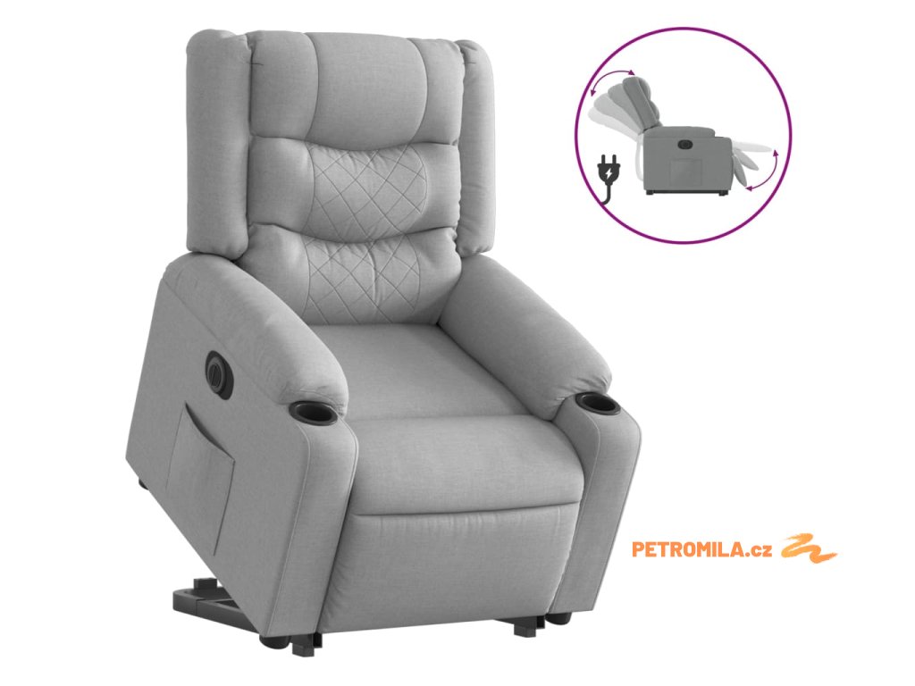 Elektrické zvedací polohovací křeslo světle šedé textil