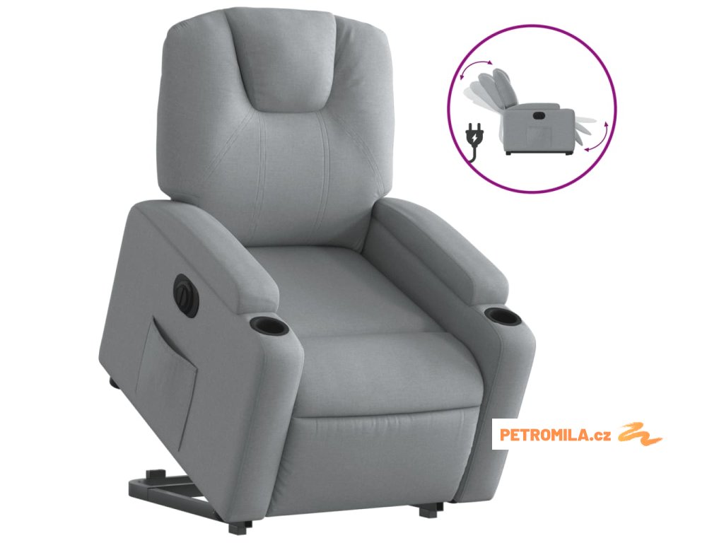 Elektrické zvedací polohovací křeslo světle šedé textil