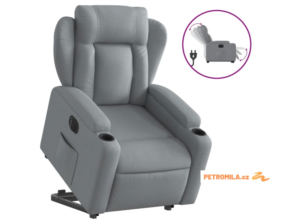 Elektrické zvedací polohovací křeslo světle šedé textil