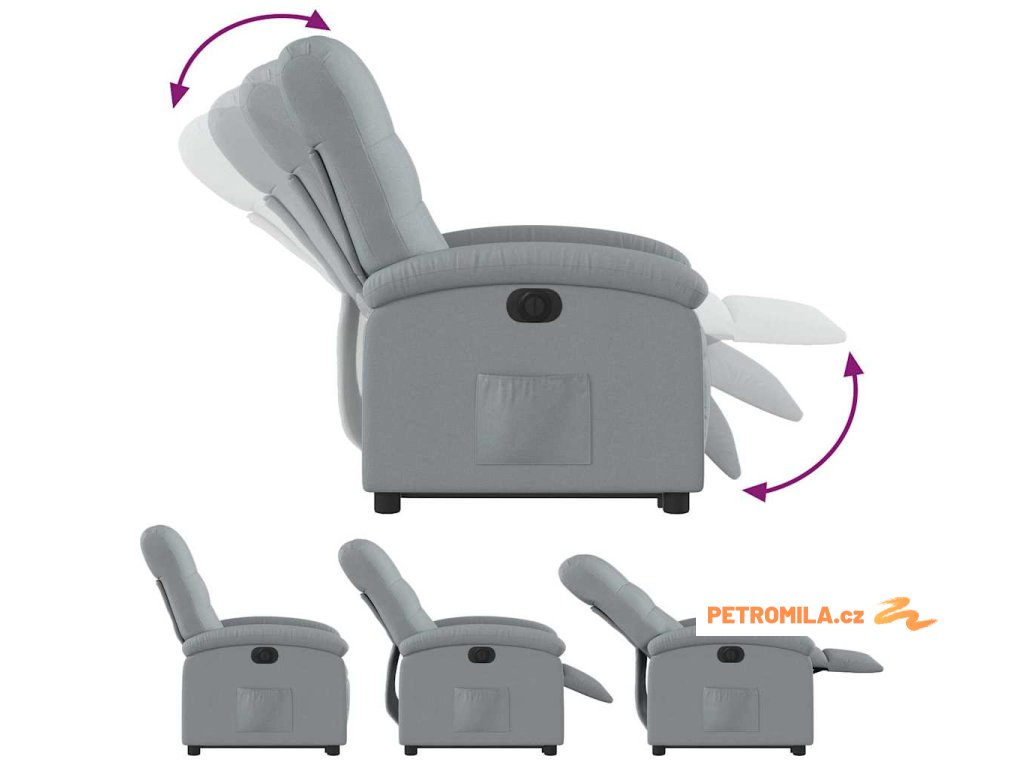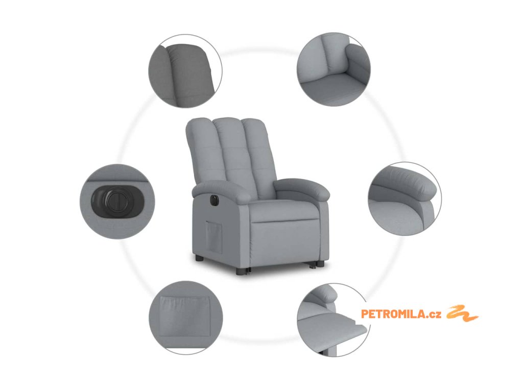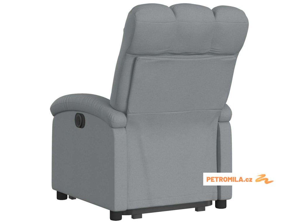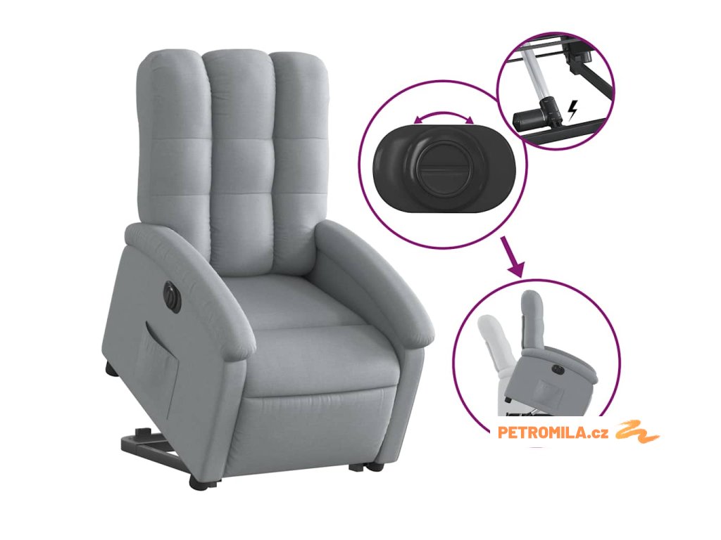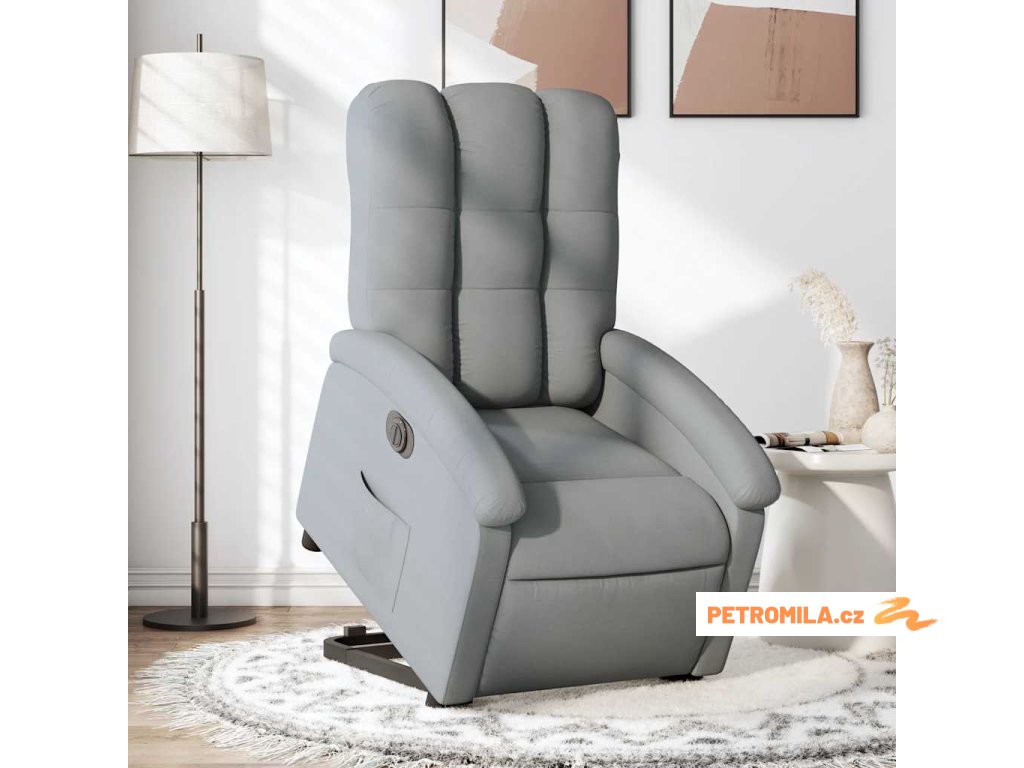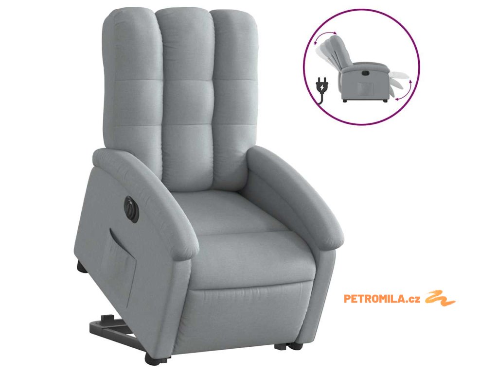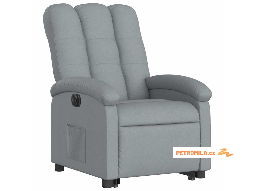 Elektrické zvedací polohovací křeslo světle šedé textil