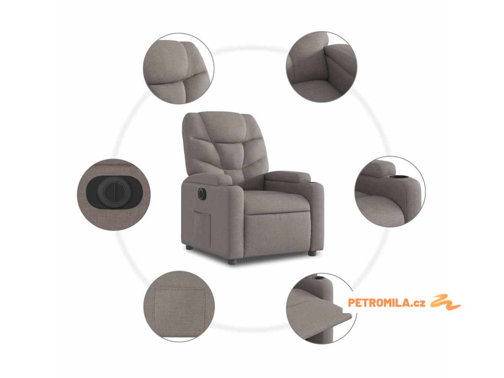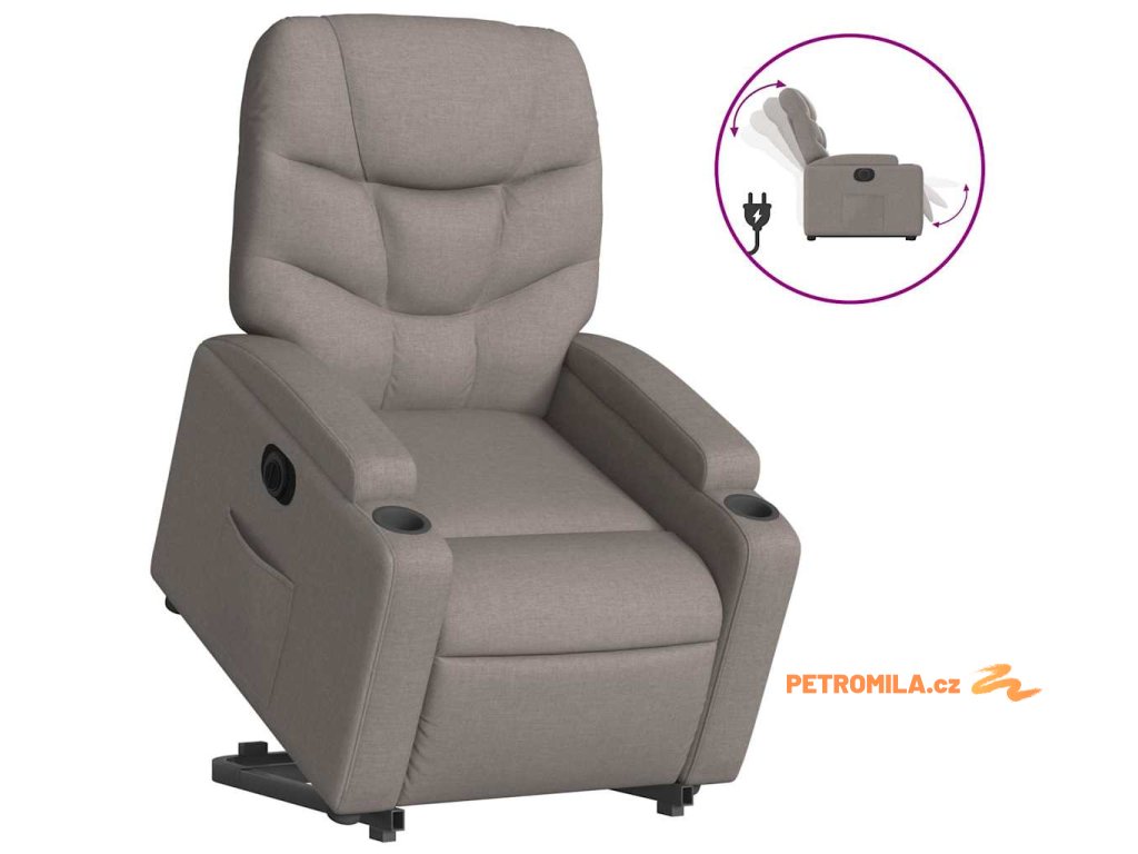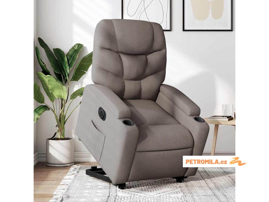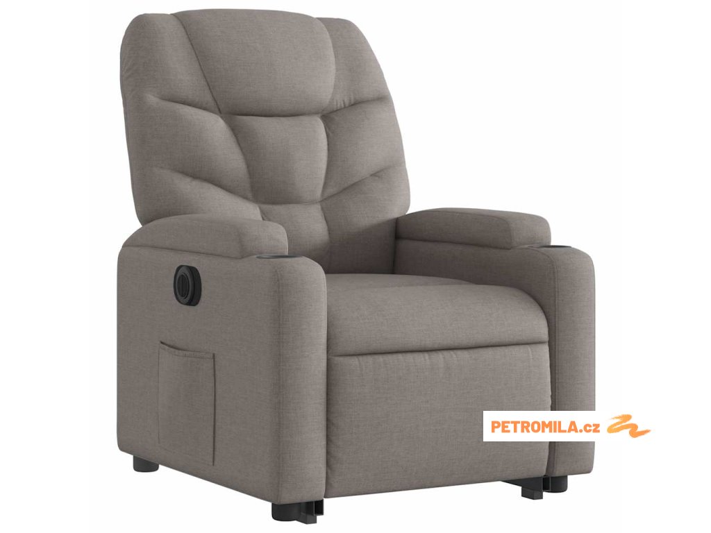 Elektrické zvedací polohovací křeslo taupe textil