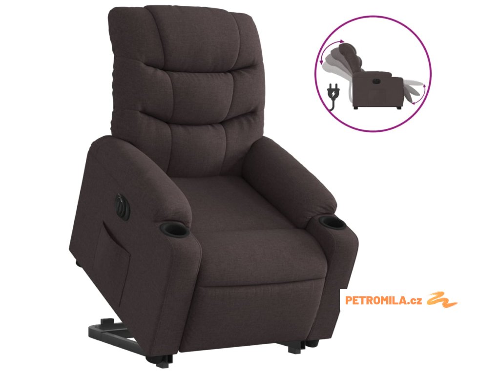 Elektrické zvedací polohovací křeslo tmavě hnědé textil