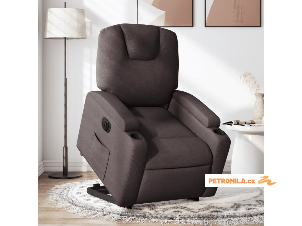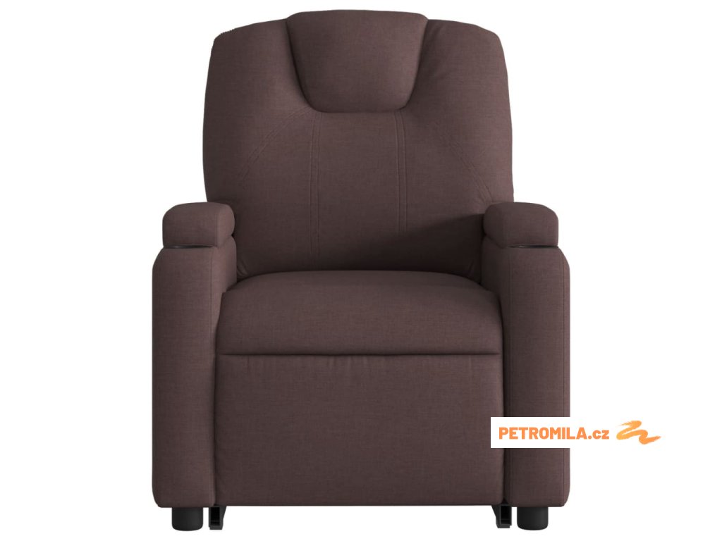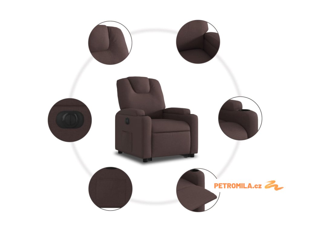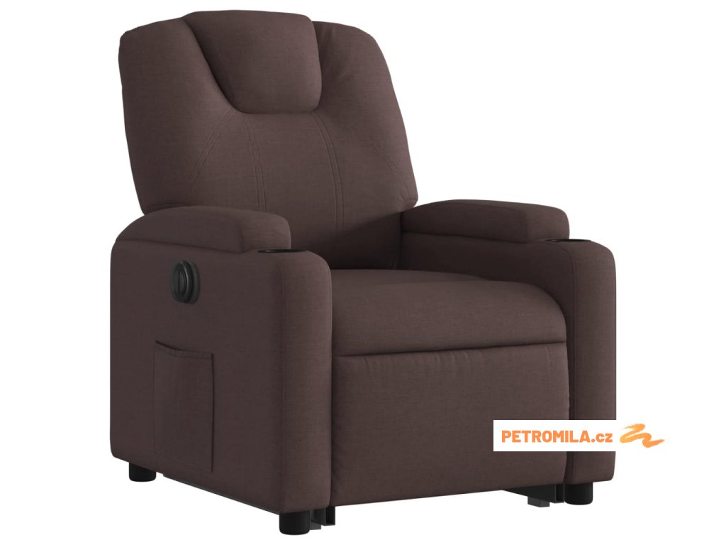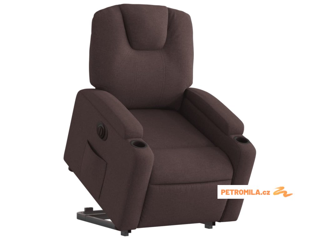 Elektrické zvedací polohovací křeslo tmavě hnědé textil