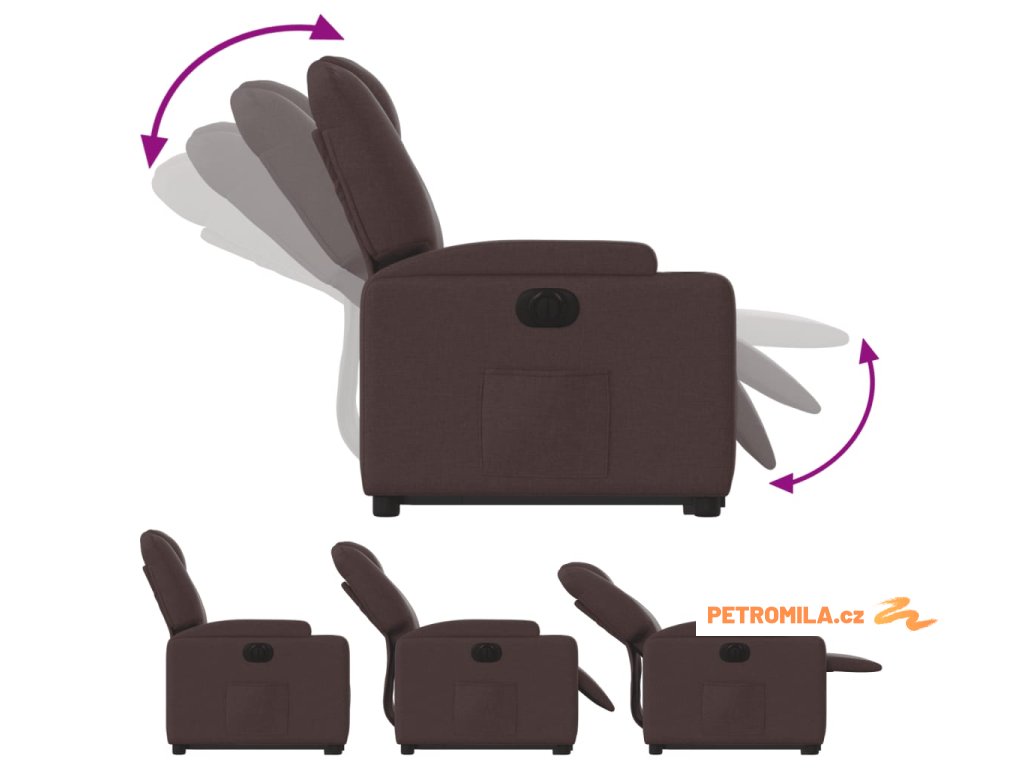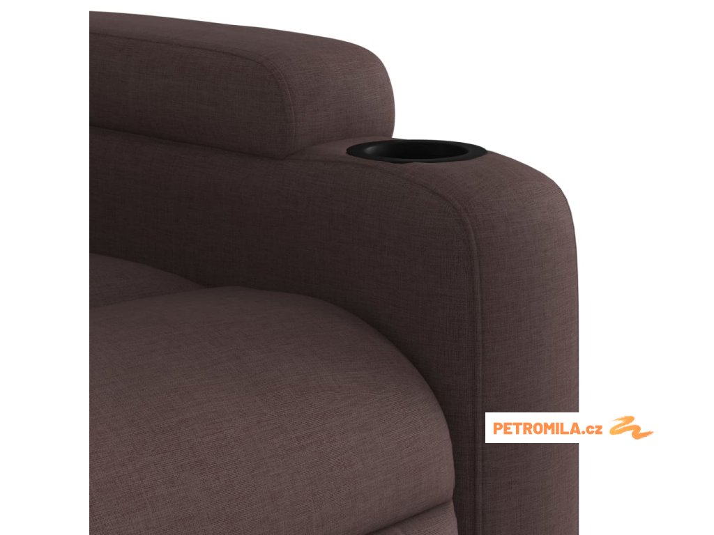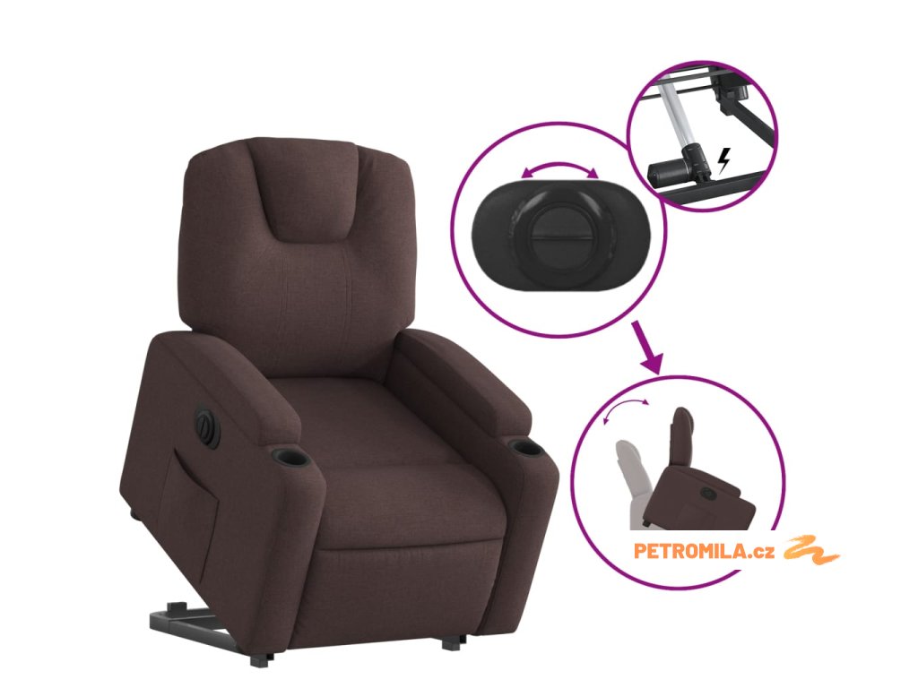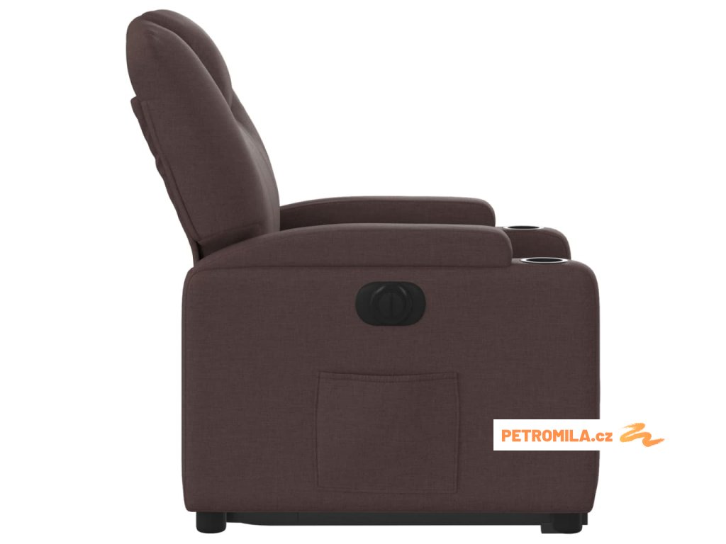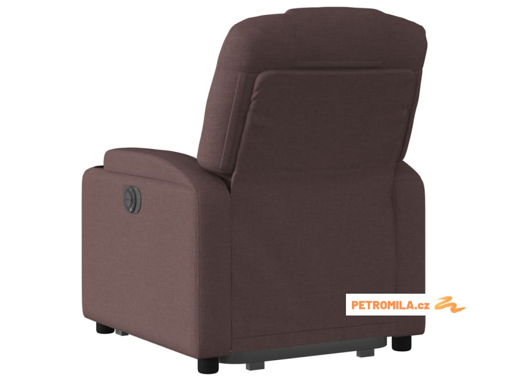 Elektrické zvedací polohovací křeslo tmavě hnědé textil