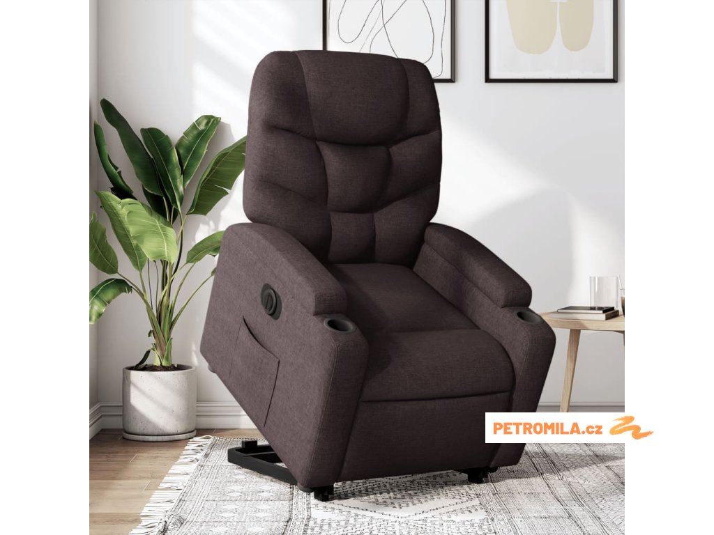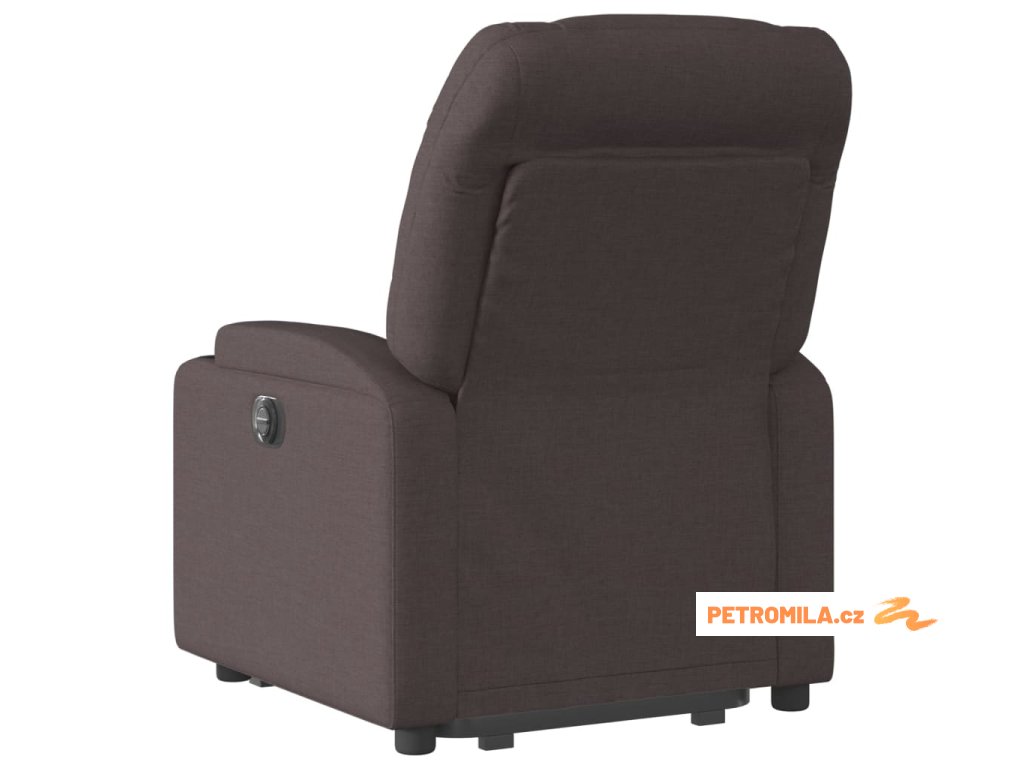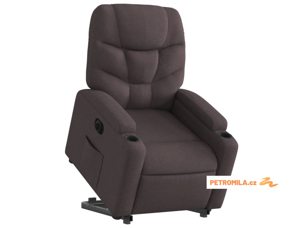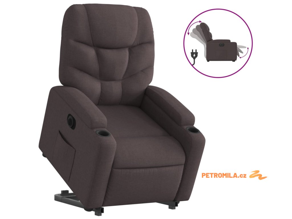 Elektrické zvedací polohovací křeslo tmavě hnědé textil