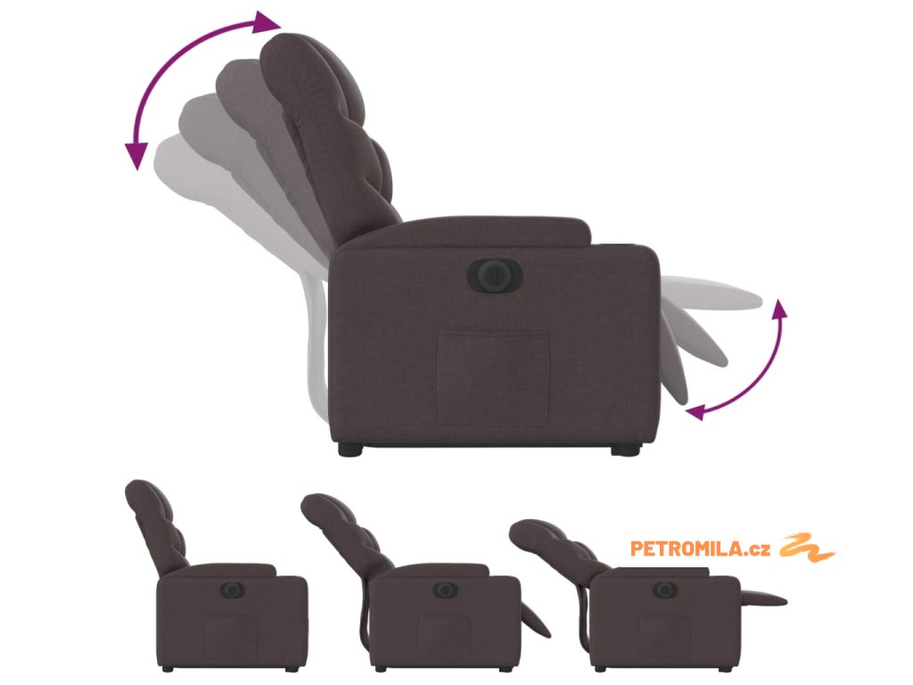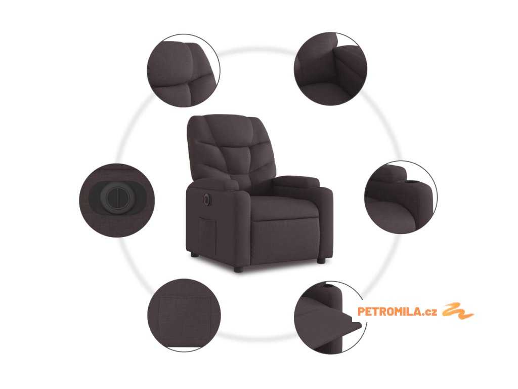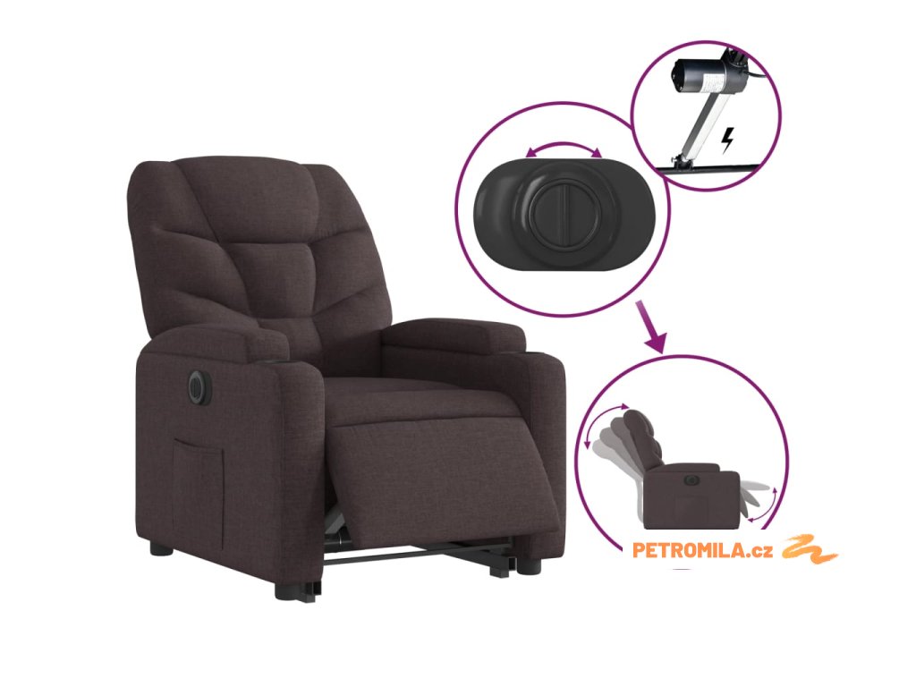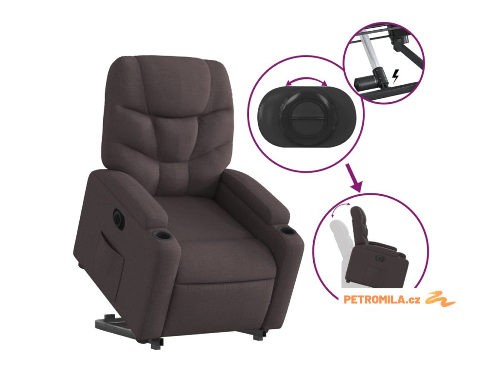 Elektrické zvedací polohovací křeslo tmavě hnědé textil