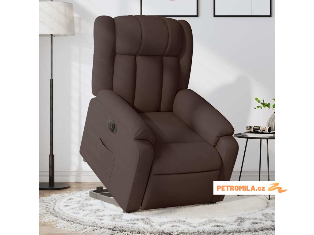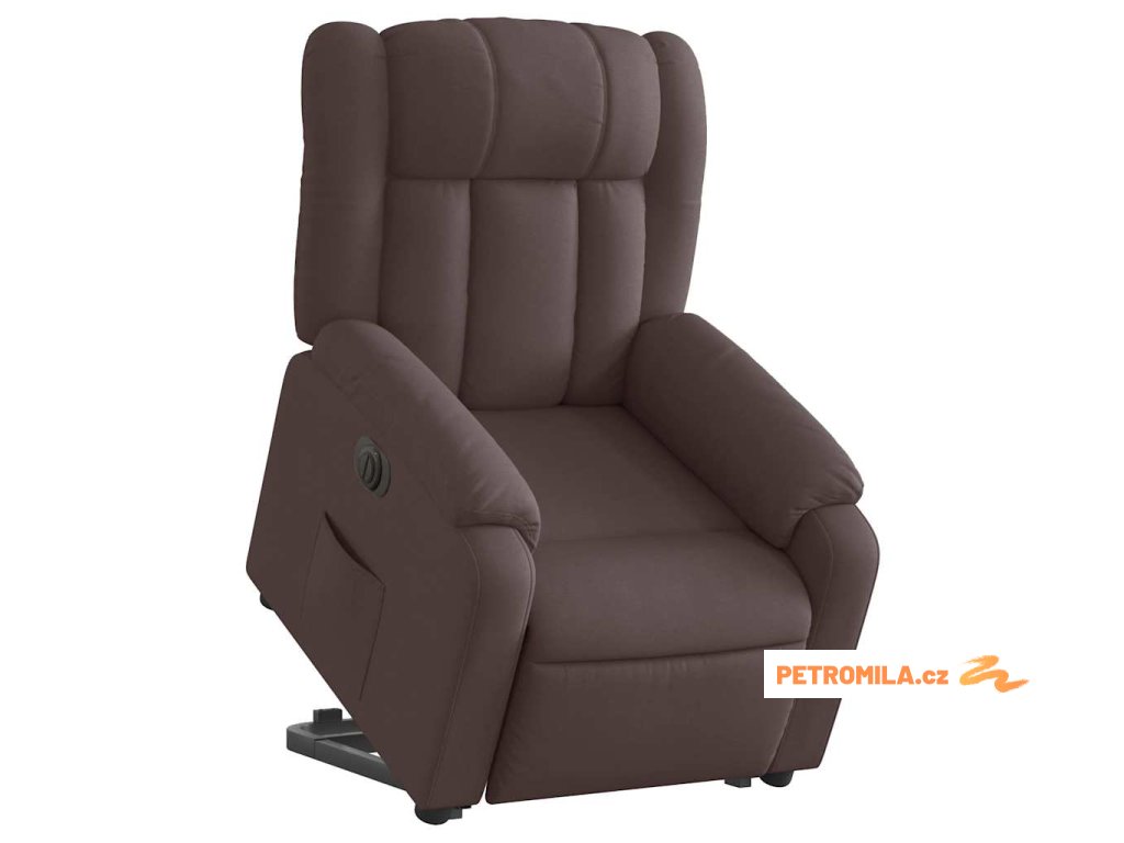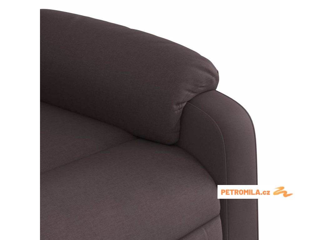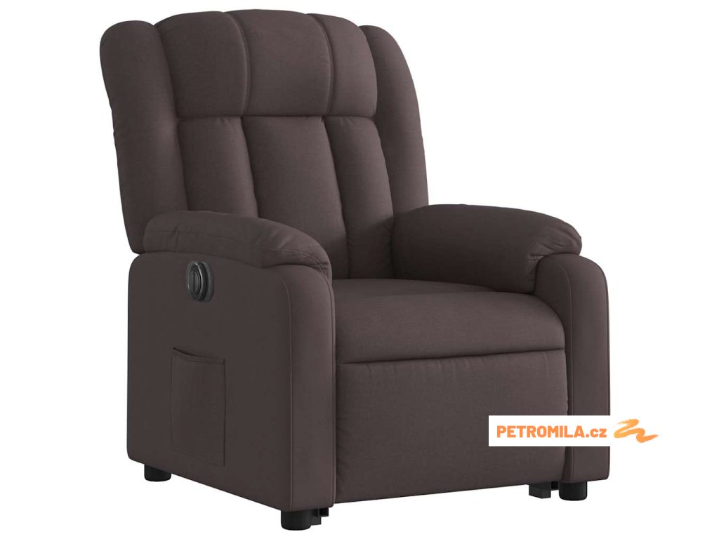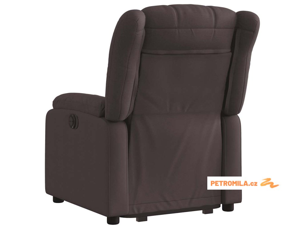 Elektrické zvedací polohovací křeslo tmavě hnědé textil