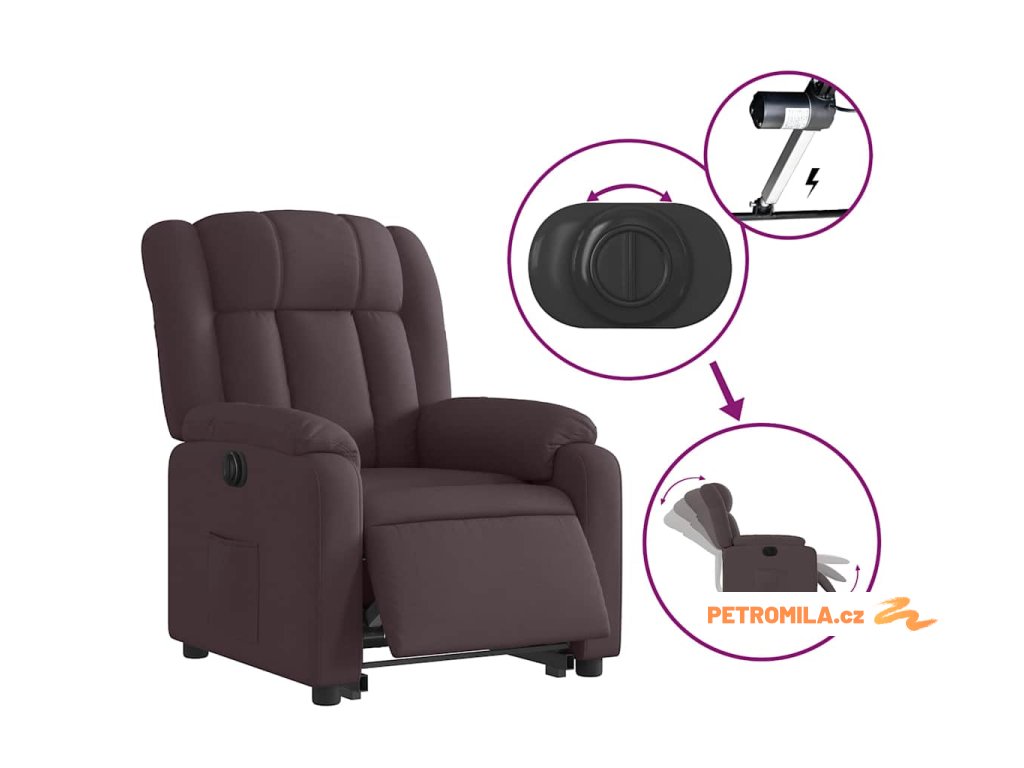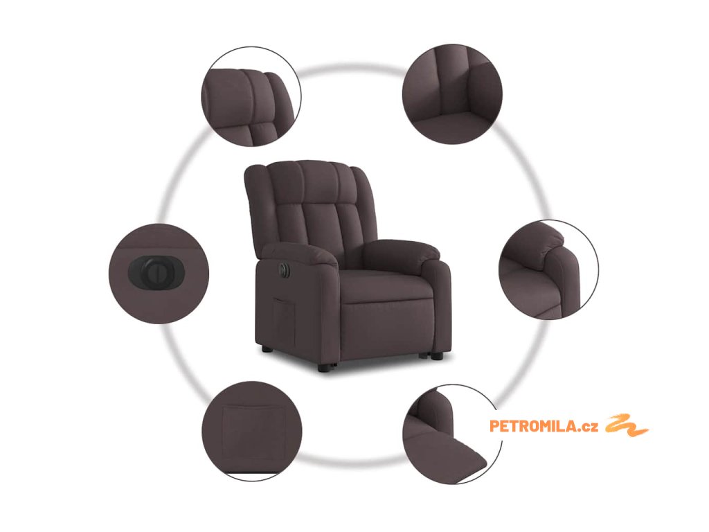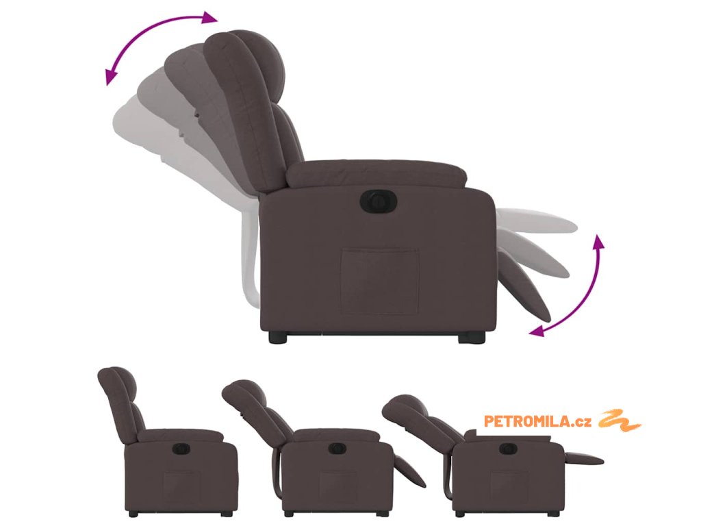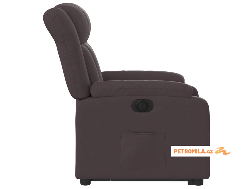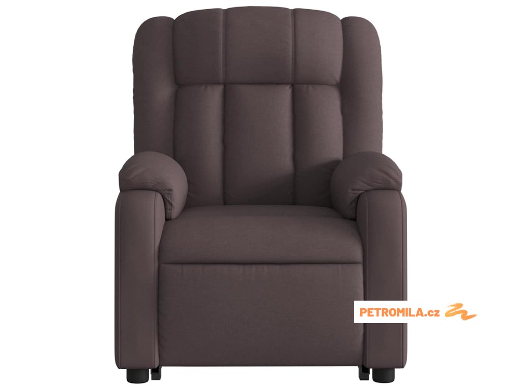 Elektrické zvedací polohovací křeslo tmavě hnědé textil