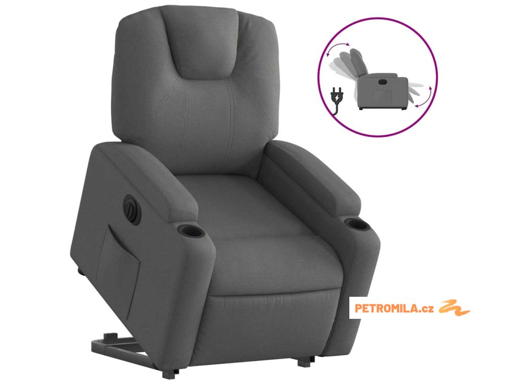 Elektrické zvedací polohovací křeslo tmavě šedé textil