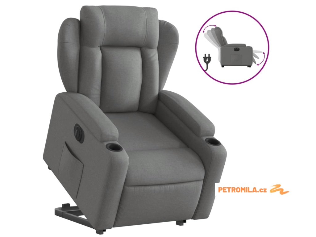 Elektrické zvedací polohovací křeslo tmavě šedé textil