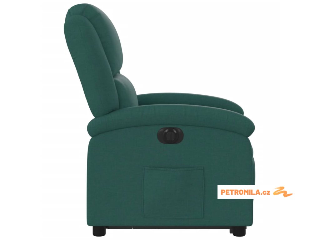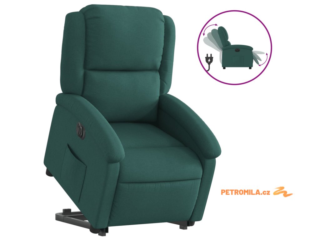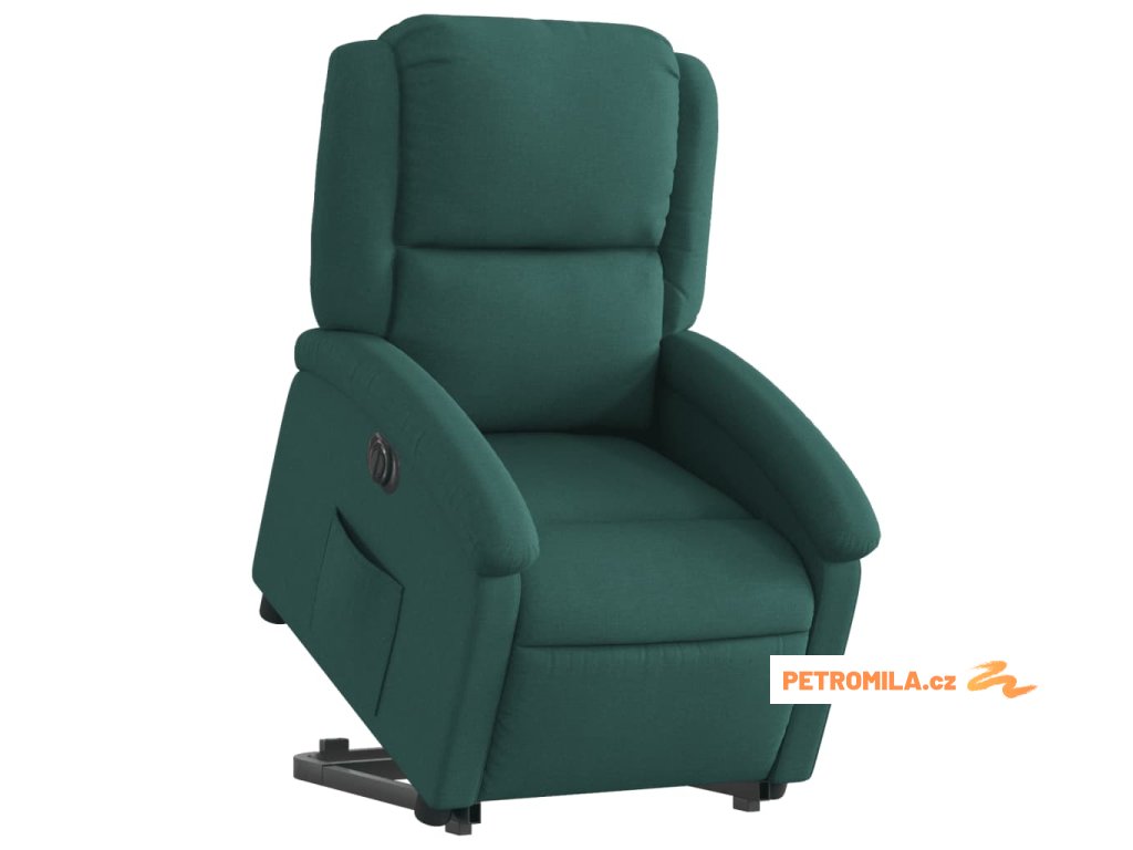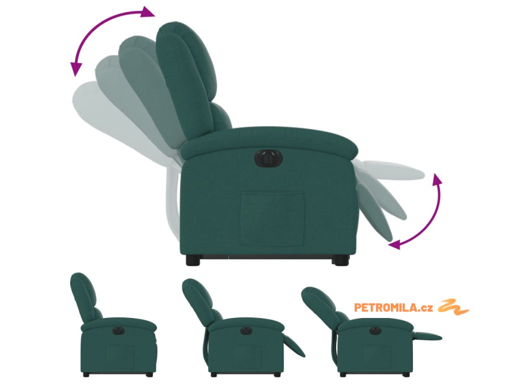 Elektrické zvedací polohovací křeslo tmavě zelené textil