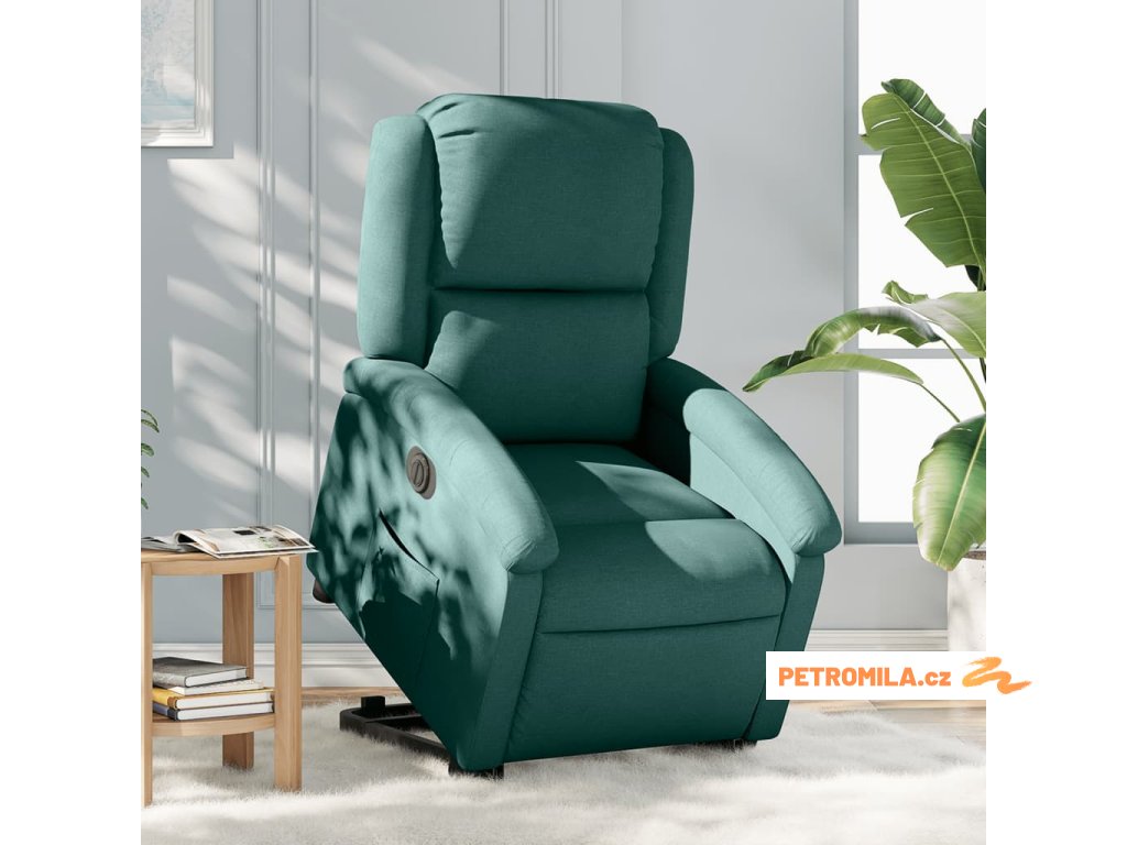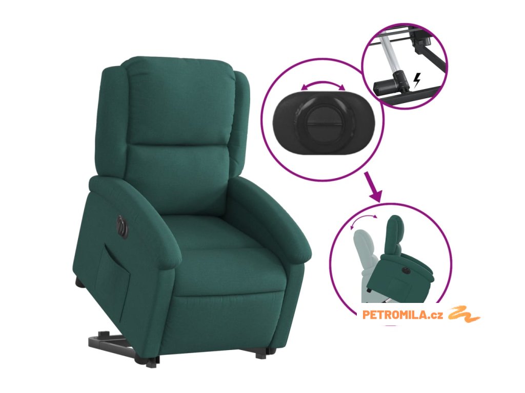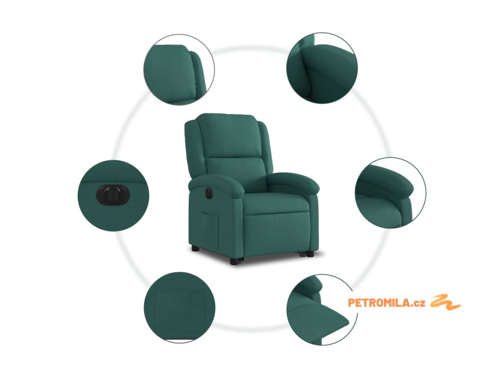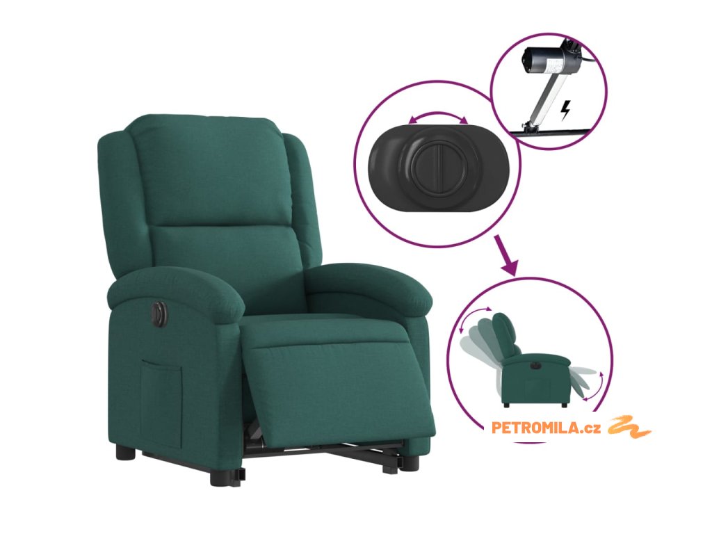 Elektrické zvedací polohovací křeslo tmavě zelené textil