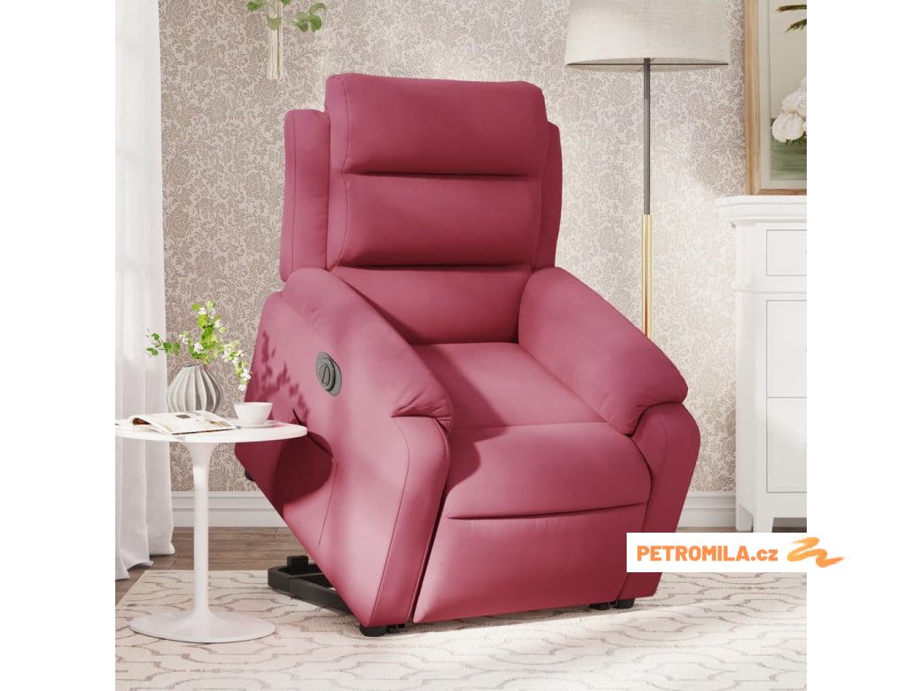 Elektrické zvedací masážní polohovací křeslo červené umělá kůže