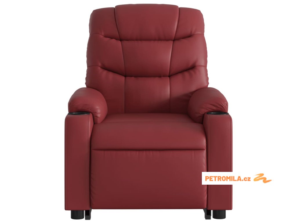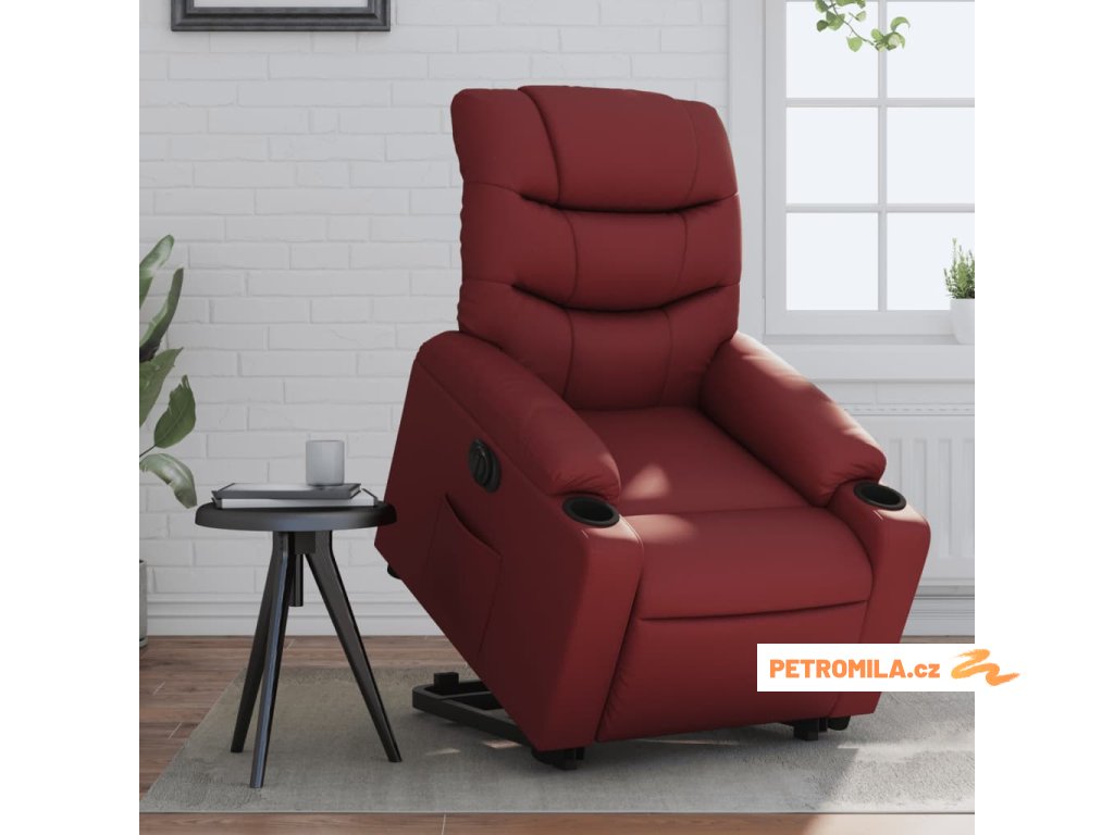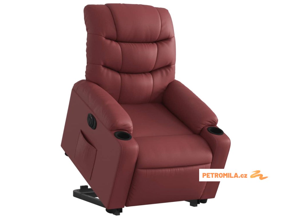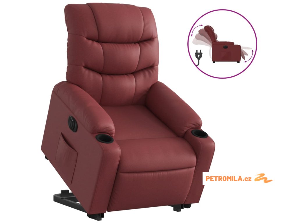 Elektrické zvedací polohovací křeslo vínové umělá kůže