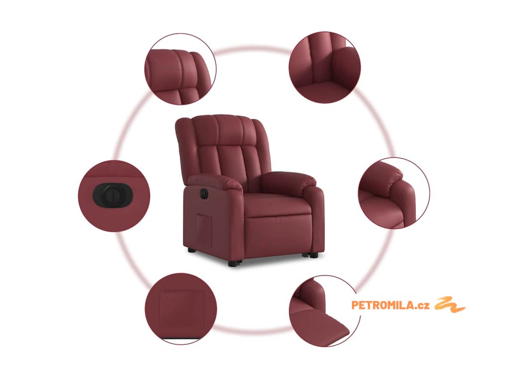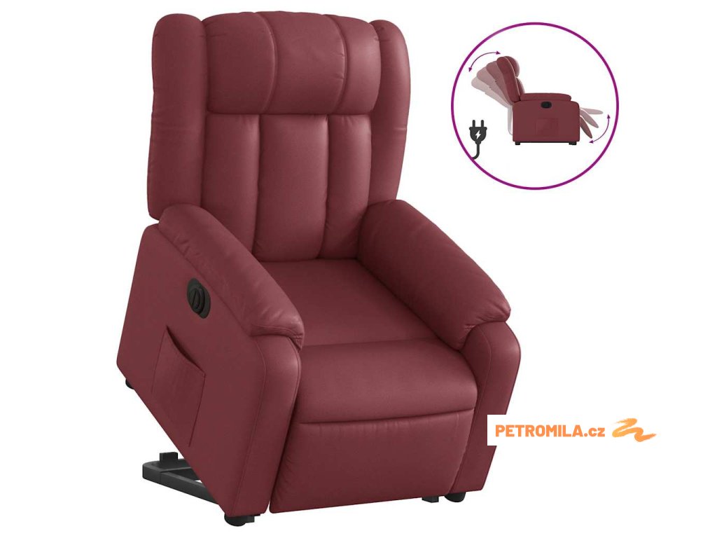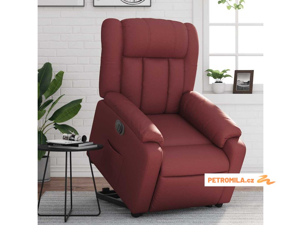 Elektrické zvedací polohovací křeslo vínové umělá kůže