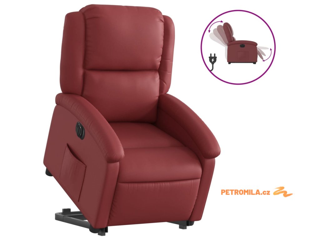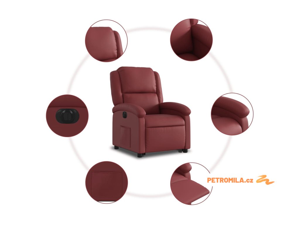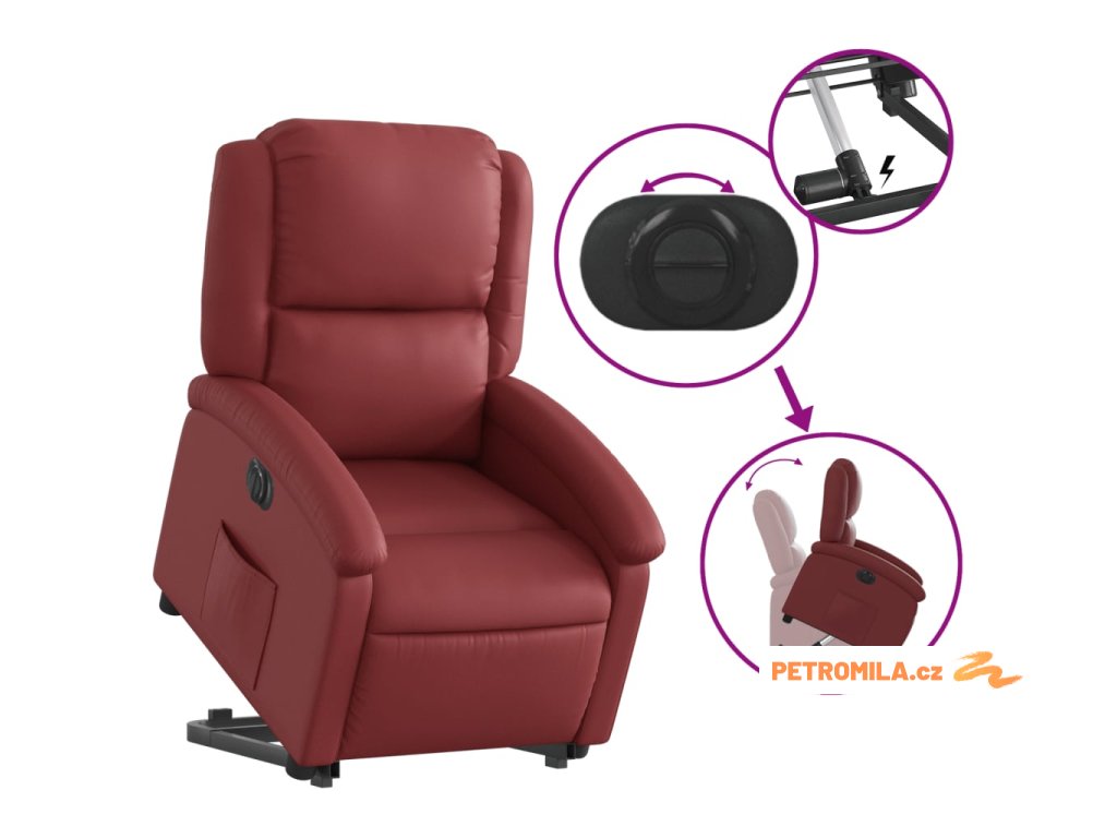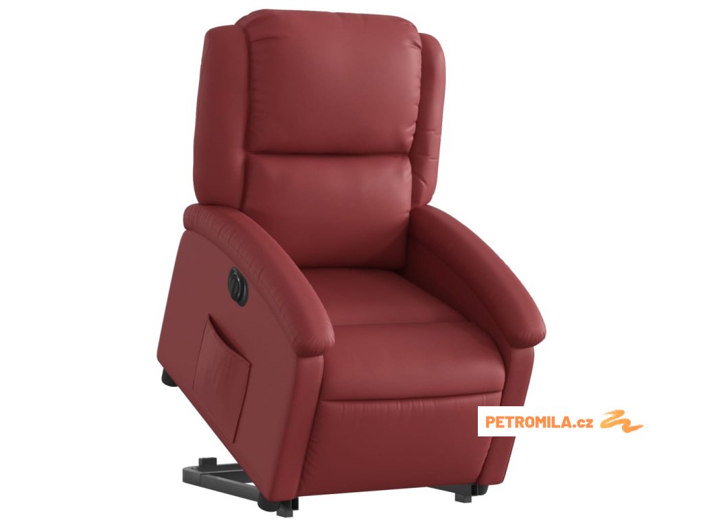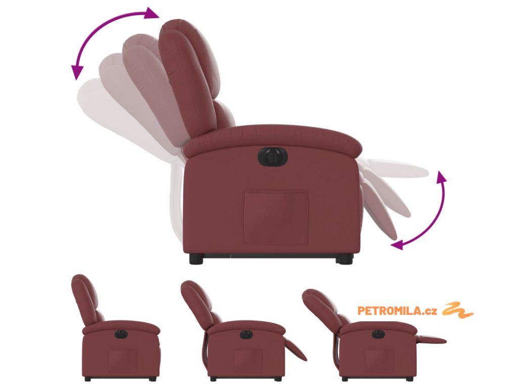 Elektrické zvedací polohovací křeslo vínové umělá kůže