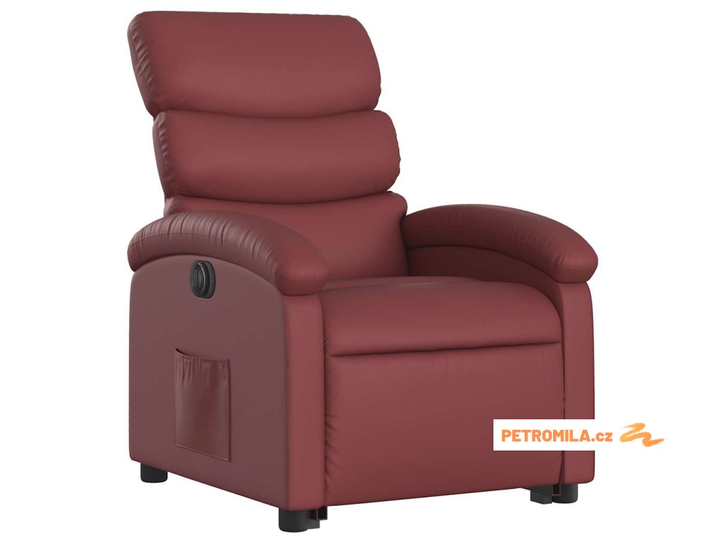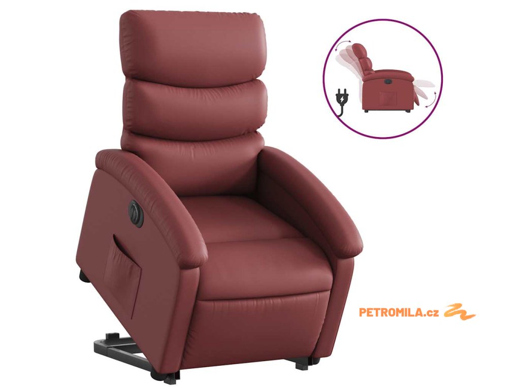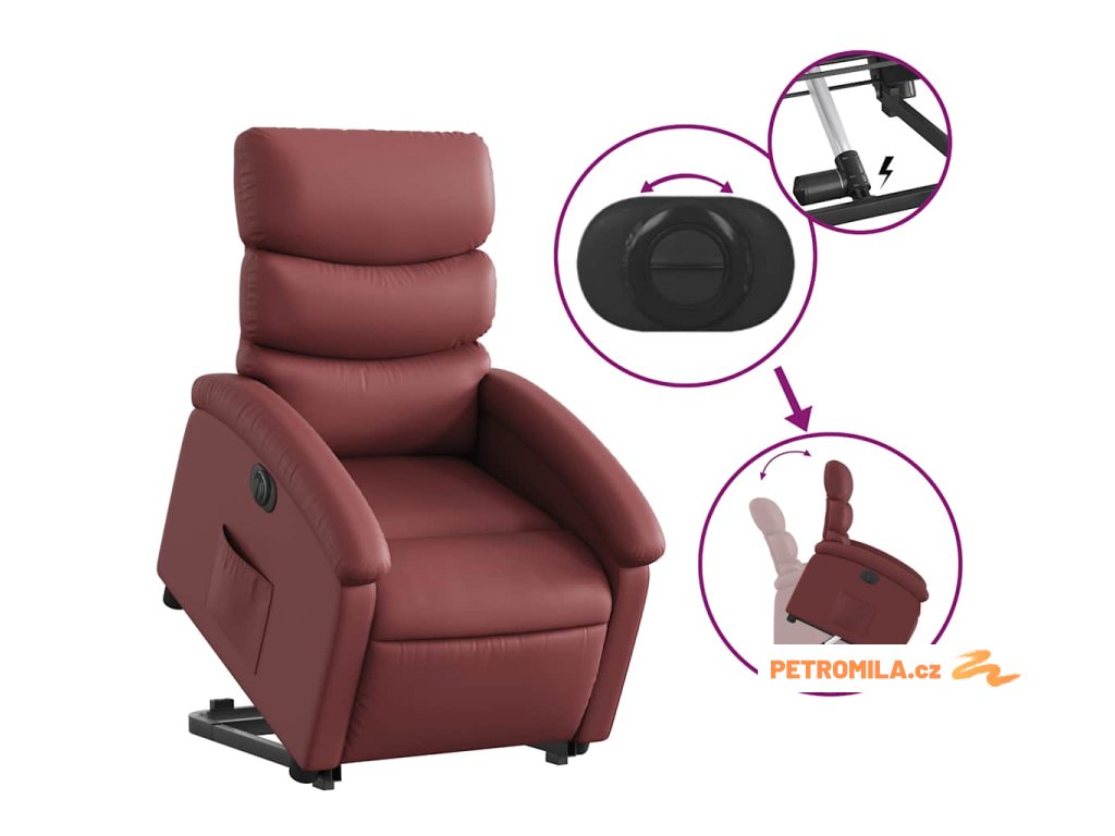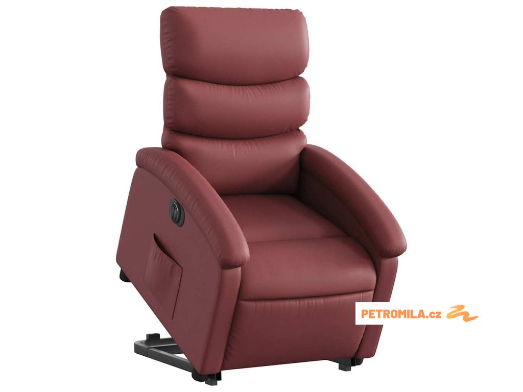 Elektrické zvedací polohovací křeslo vínové umělá kůže