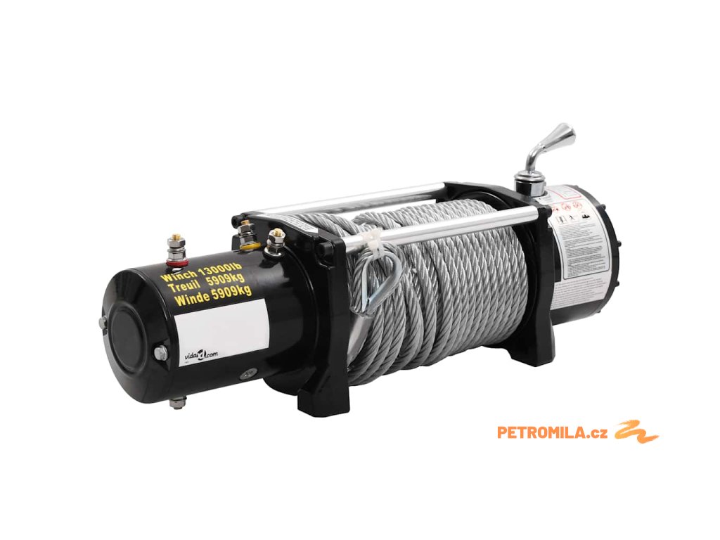 Naviják můžete ovládat přiloženým bezdrátovým dálkovým ovládáním. Všechny kabely a lana, háčky a manuály jsou dodávány v robustní kartonové krabici. Ocelový kabel má průměr 9,5 mm a délku 26 metrů. Maximální tažná síla navijáku je 2 metry za minutu.