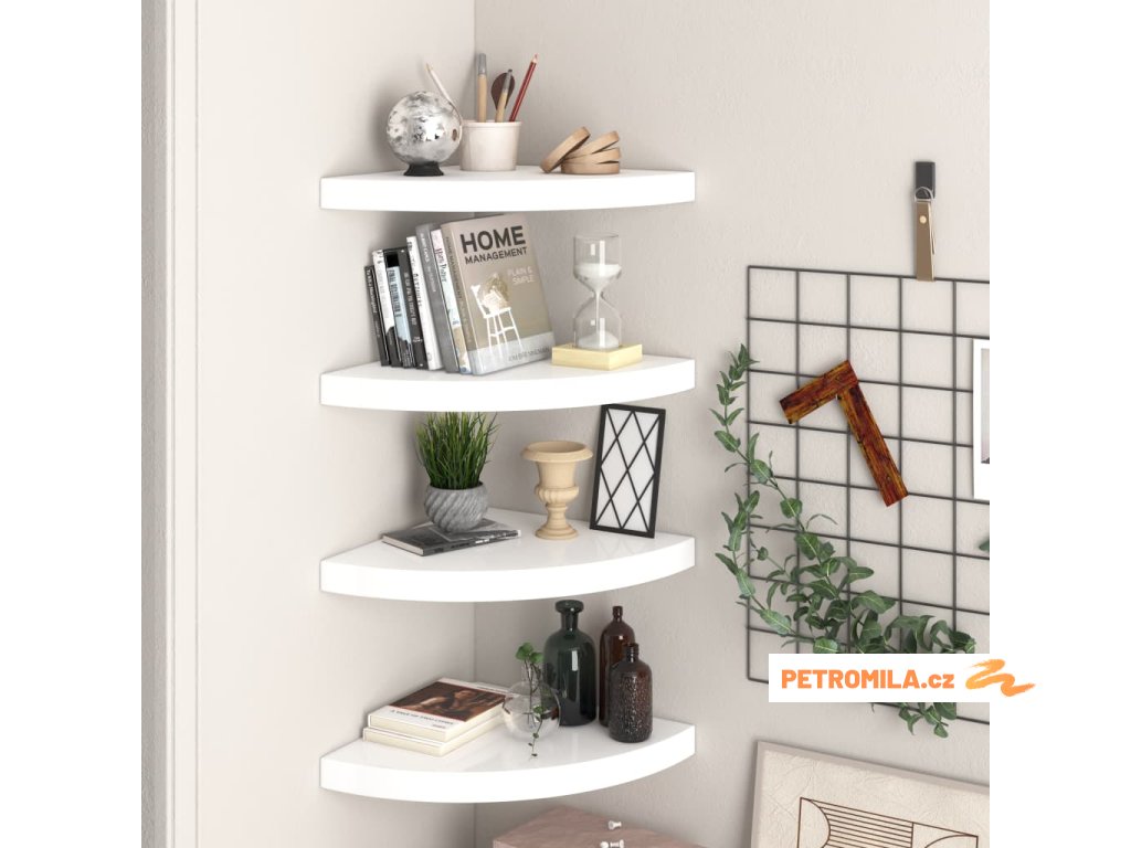 Tato sada 4 stylových rohových polic je ideálním místem pro vystavení vašich oblíbených knih, ozdob, fotografií, trofejí apod.