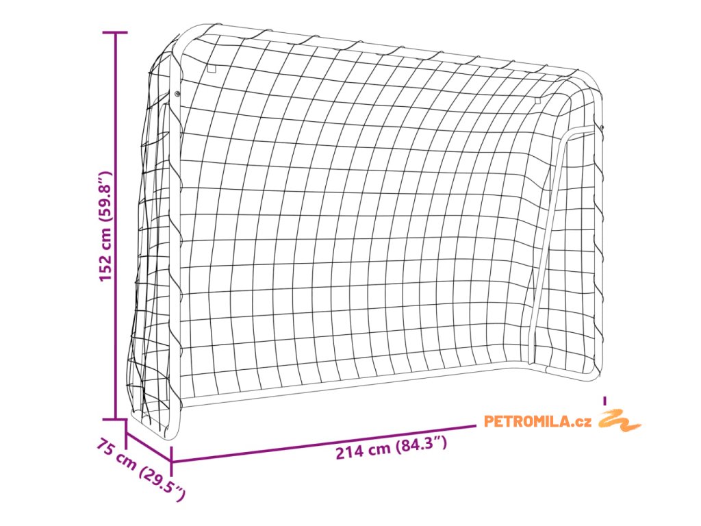Fotbalová branka se sítí bílá 214x75x152 cm ocel a polyester