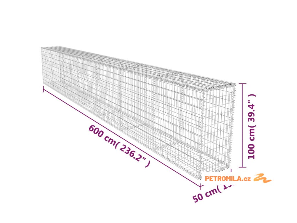 Gabionová zeď s víkem pozinkovaná ocel 600 x 50 x 100 cm