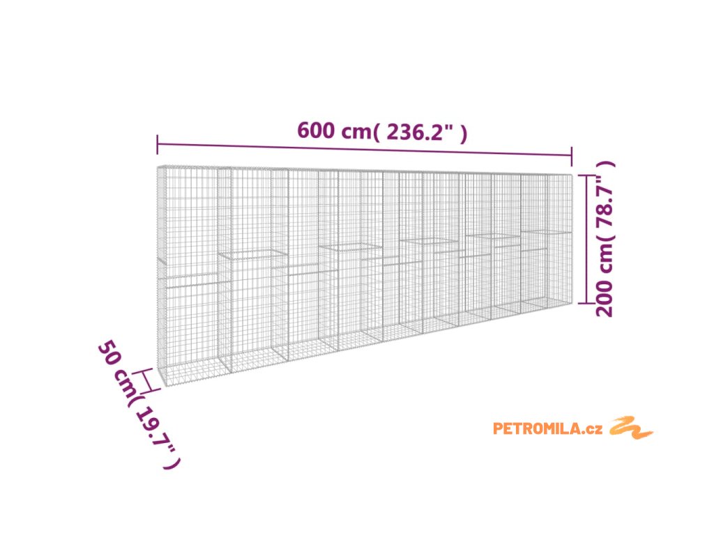 Gabionová zeď s víkem z pozinkované oceli 600 x 50 x 200 cm