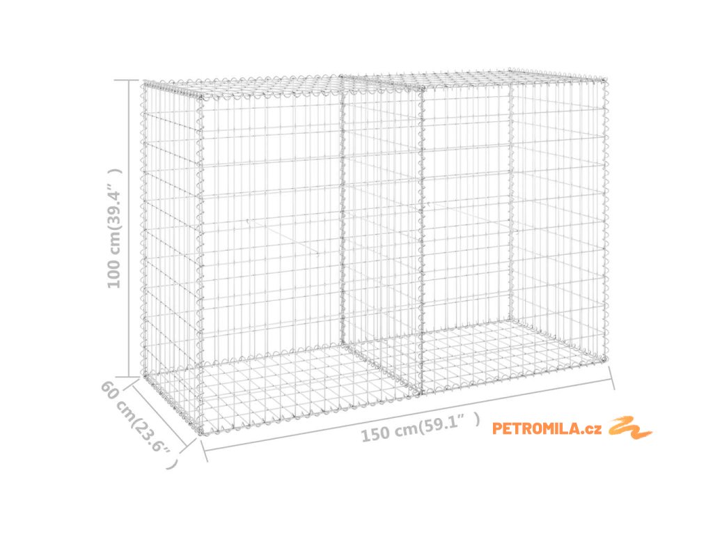 Gabionová zeď s víky pozinkovaná ocel 150 x 60 x 100 cm