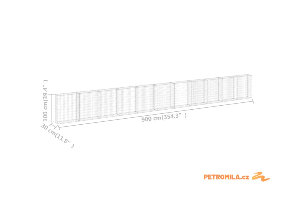 Gabionová zeď s víky pozinkovaná ocel 900 x 30 x 100 cm