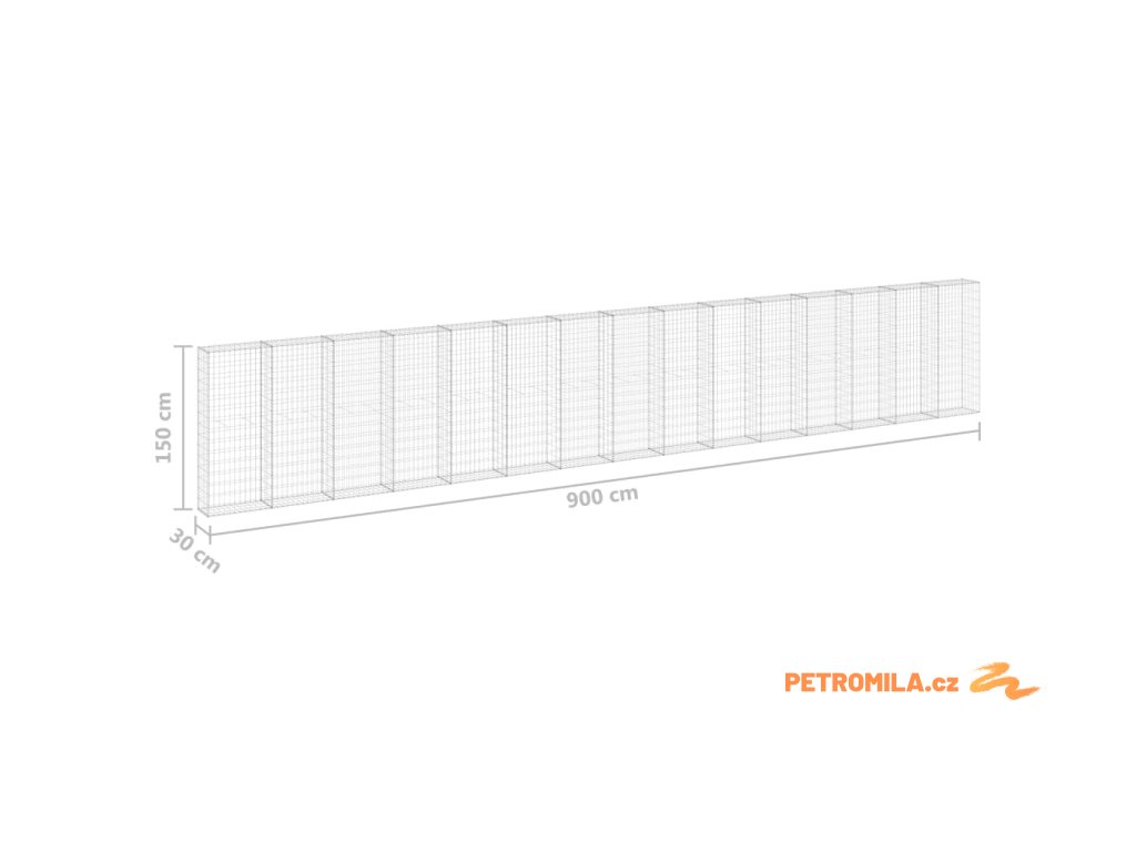Gabionová zeď s víky pozinkovaná ocel 900 x 30 x 150 cm