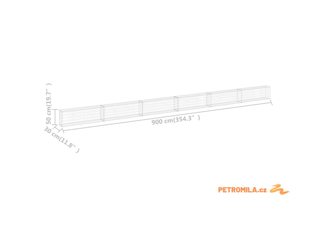 Gabionová zeď s víky pozinkovaná ocel 900 x 30 x 50 cm