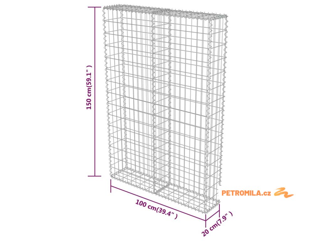 Gabionová zeď s víky z pozinkované oceli 100 x 20 x 150 cm