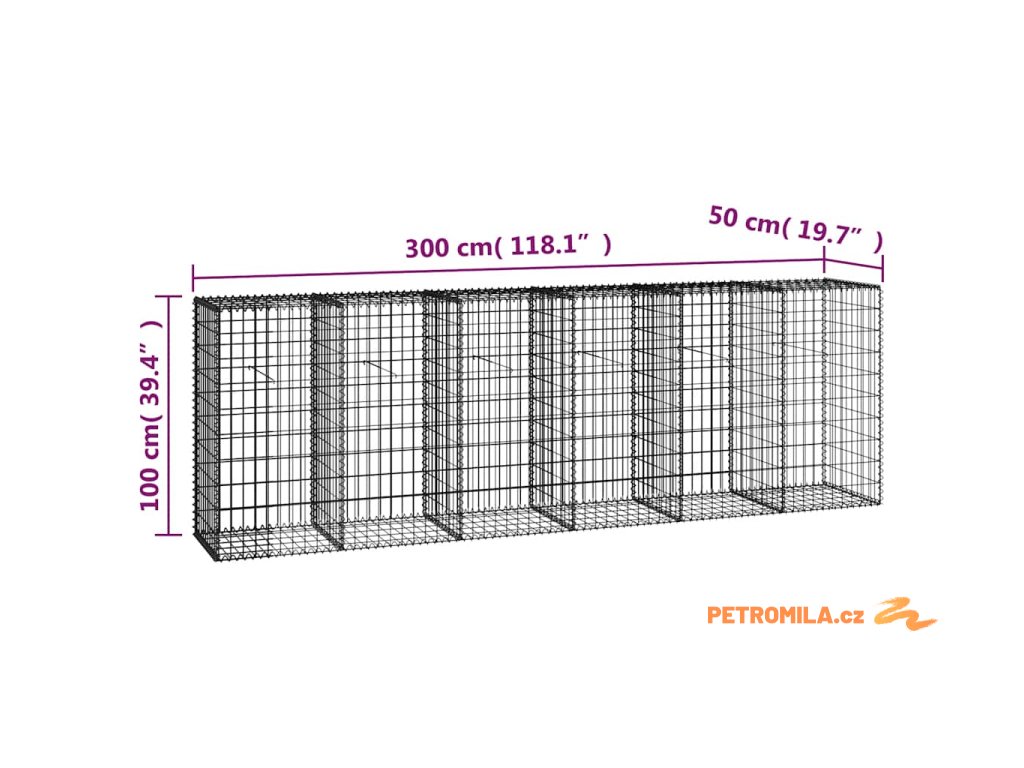 Gabionová zeď s víky z pozinkované oceli 300 x 50 x 100 cm