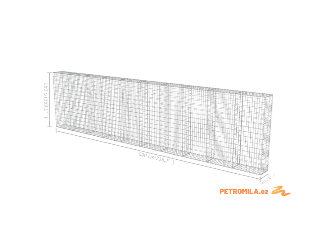 Gabionová zeď s víky z pozinkované oceli 600 x 30 x 150 cm
