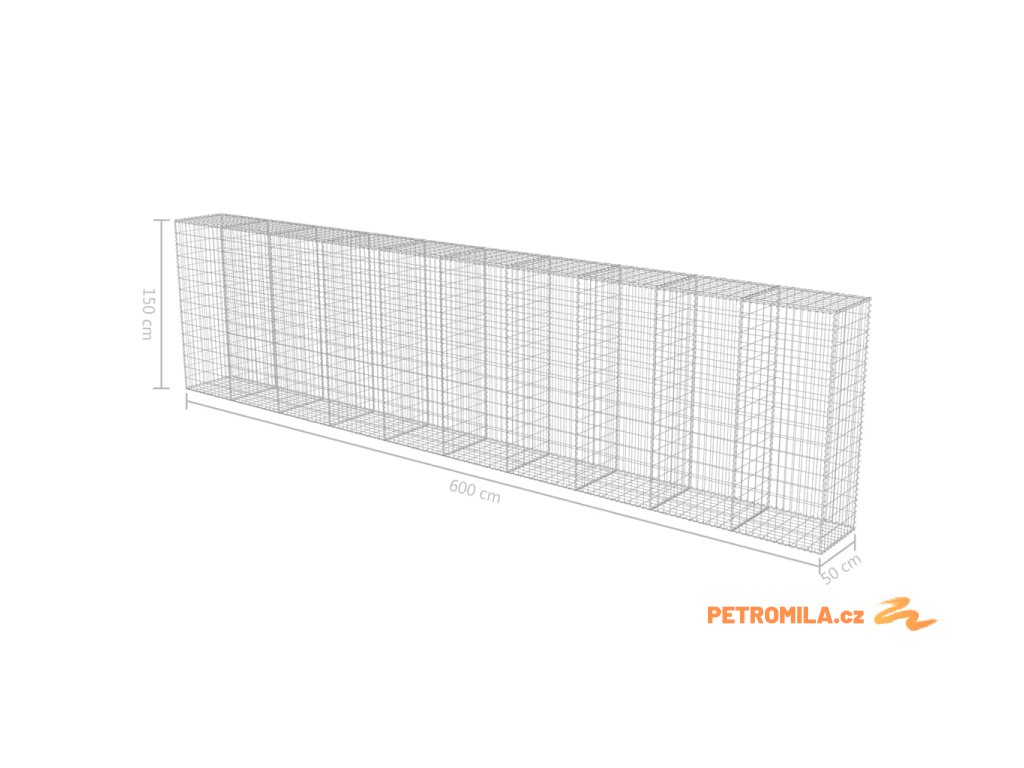 Gabionová zeď s víky z pozinkované oceli 600 x 50 x 150 cm