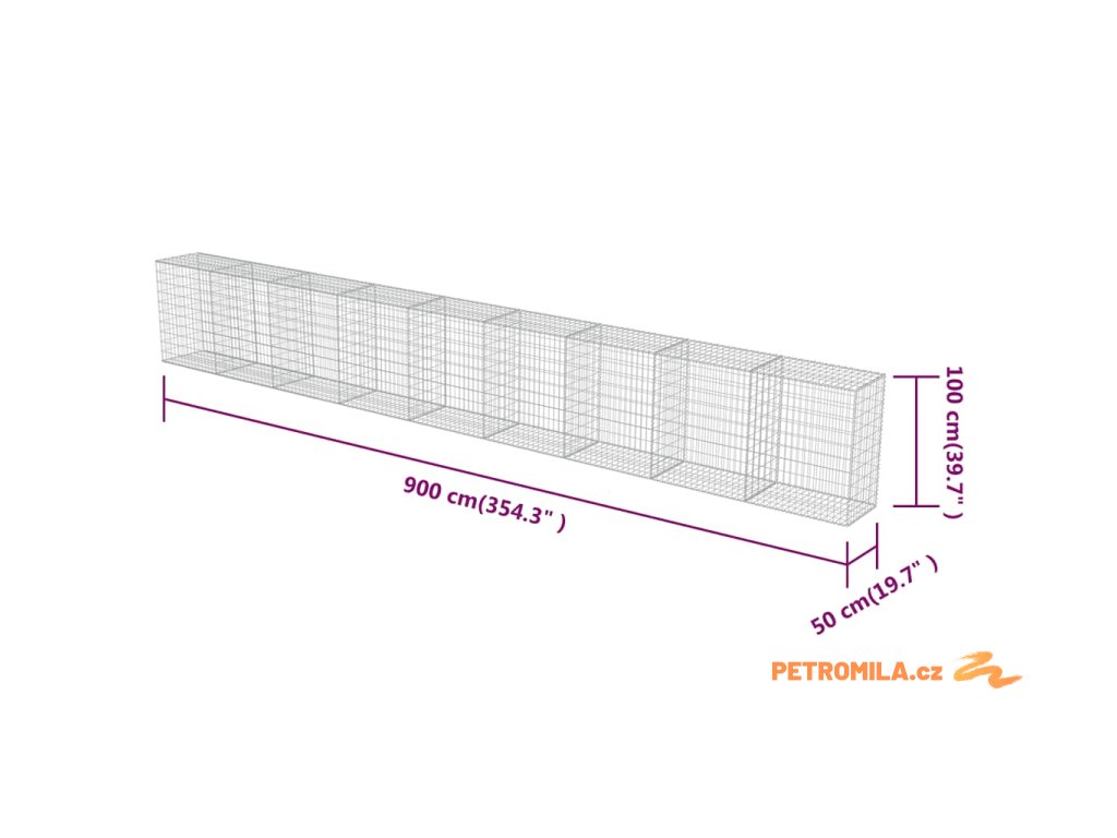Gabionová zeď s víky z pozinkované oceli 900 x 50 x 100 cm