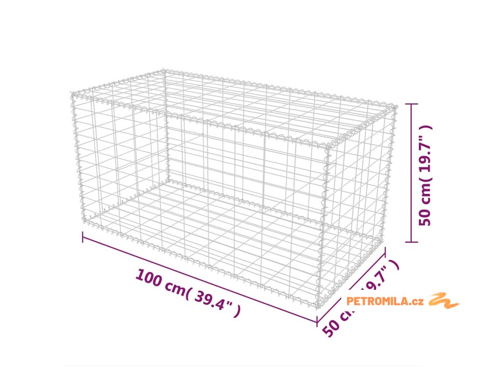 Gabionový koš pozinkovaná ocel 100 x 50 x 50 cm