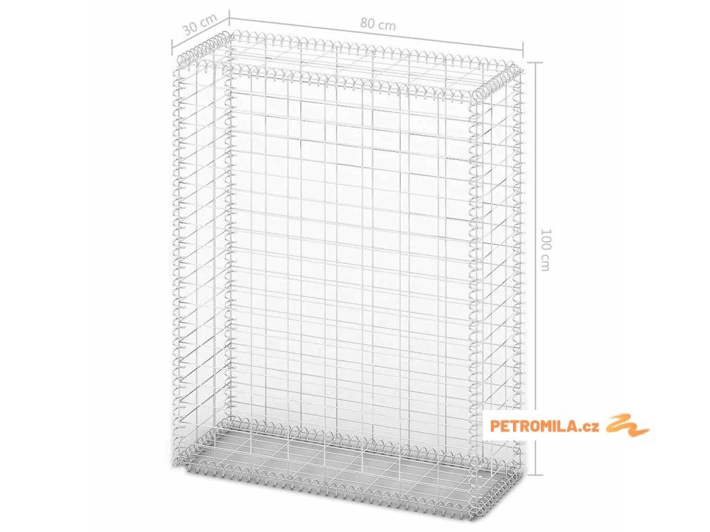 Gabionový koš s víky z pozinkovaného drátu 100 x 80 x 30 cm