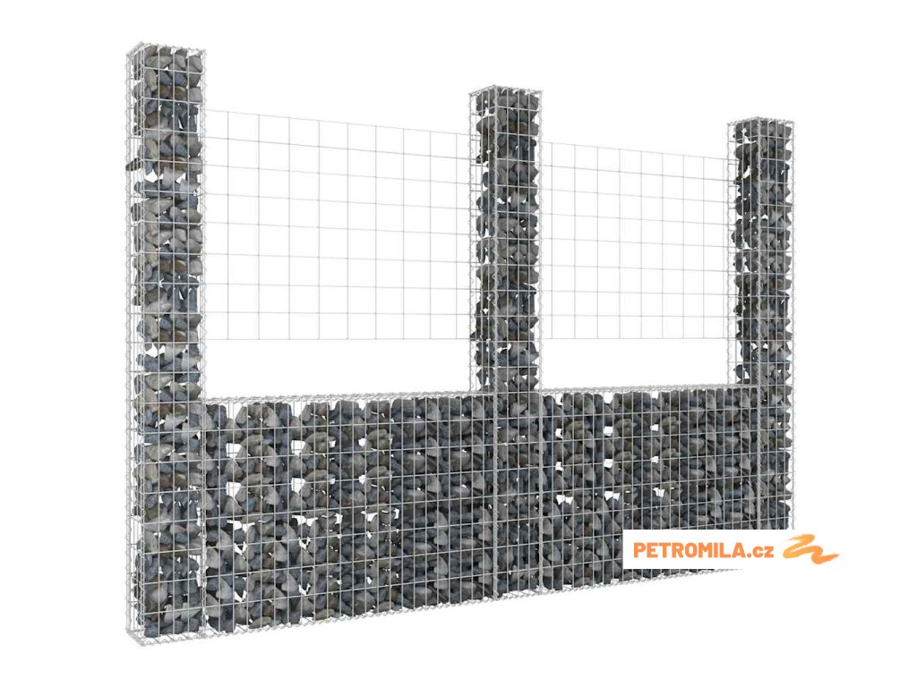 Gabionový koš ve tvaru U se 3 sloupky železo 260 x 20 x 200 cm
