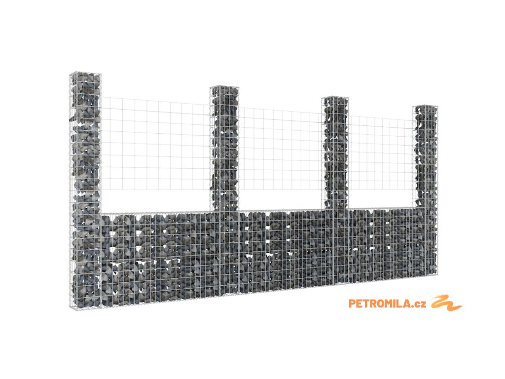 Gabionový koš ve tvaru U se 4 sloupky železo 380 x 20 x 200 cm