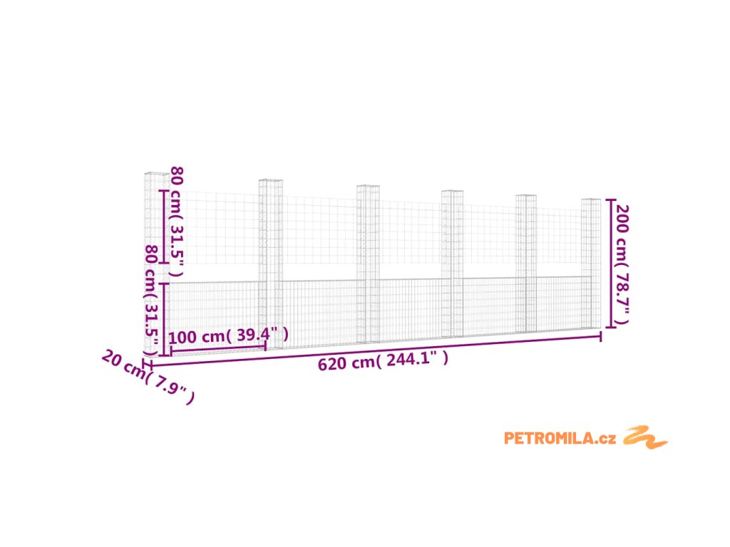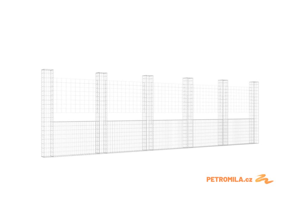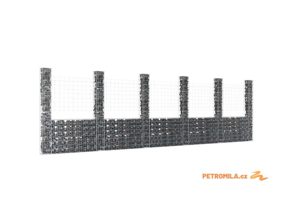 Gabionový koš ve tvaru U se 6 sloupky železo 620 x 20 x 200 cm