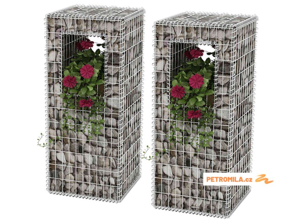 Gabionový sloup / truhlík 2 ks ocelový 50 x 50 x 120 cm