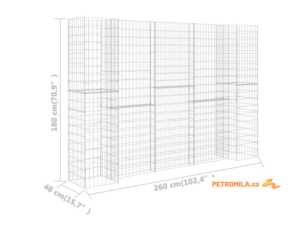 Gabionový truhlík ve tvaru písmene H ocelový drát 260x40x180 cm