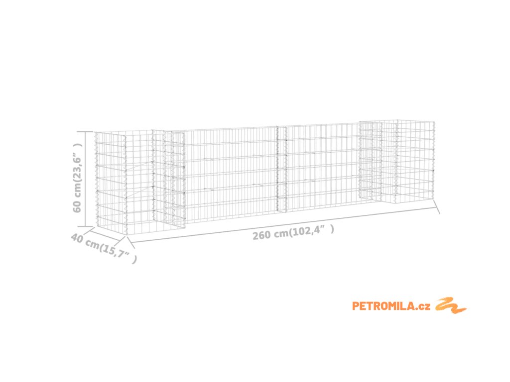 Gabionový truhlík ve tvaru písmene H ocelový drát 260x40x60 cm