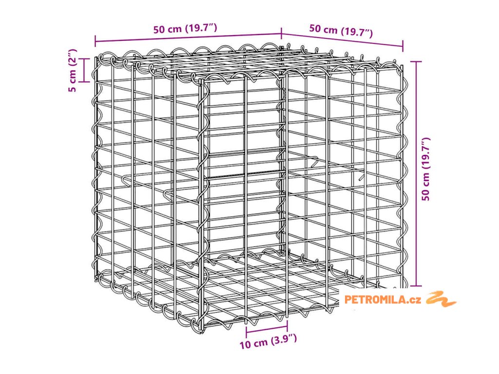 Gabionový vyvýšený záhon krychle ocelový drát 50 x 50 x 50 cm