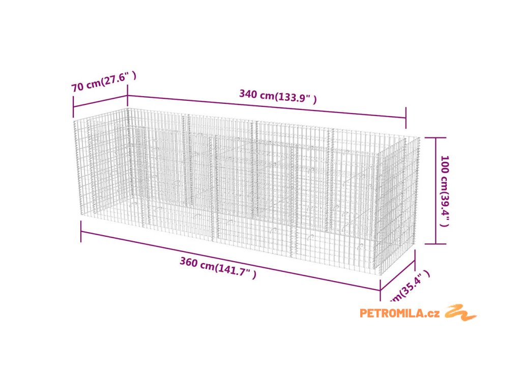 Gabionový vyvýšený záhon ocel 360 x 90 x 100 cm