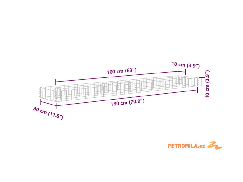 Gabionový vyvýšený záhon pozinkovaná ocel 180 x 30 x 10 cm